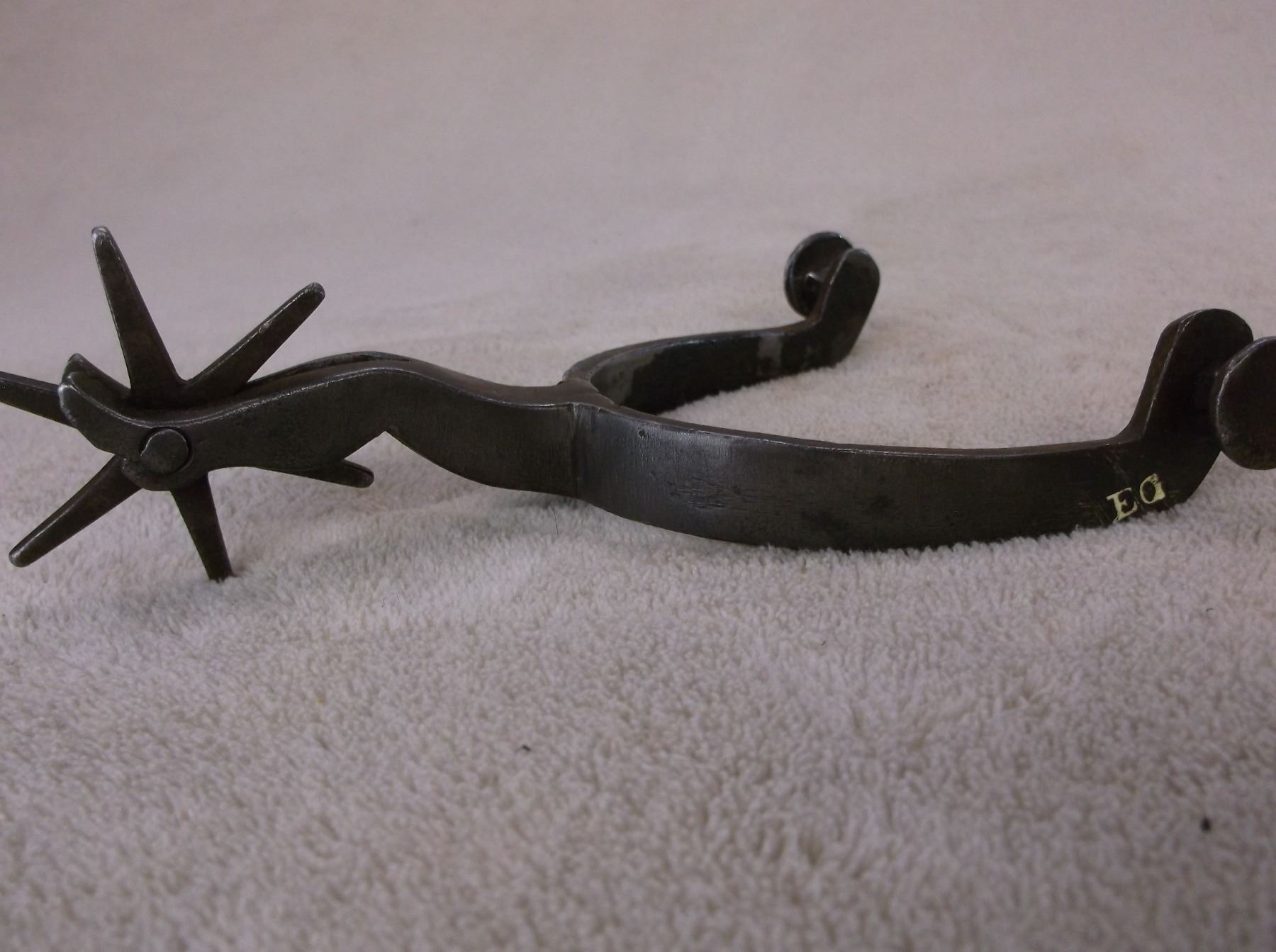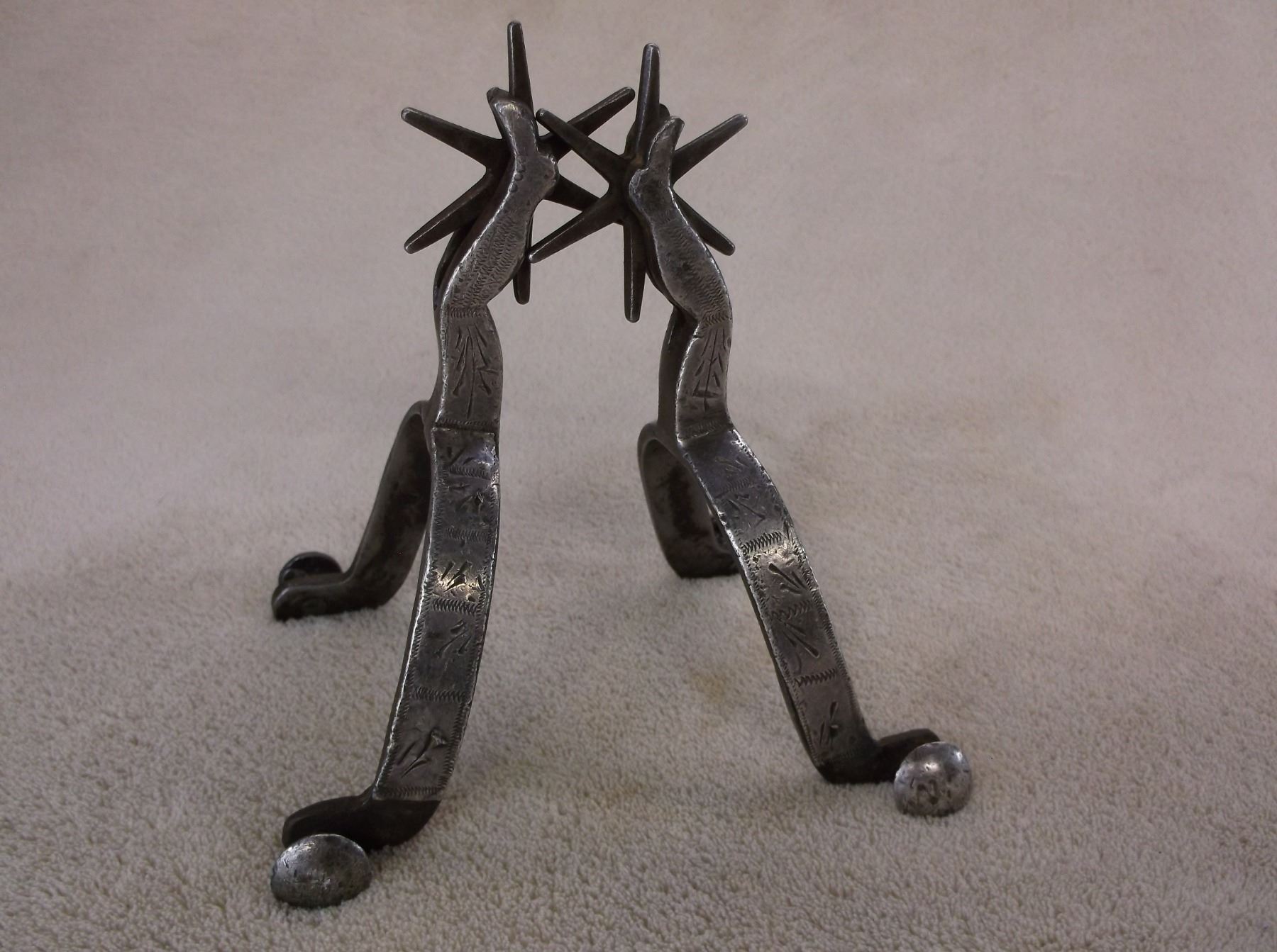 Marked EG (Eduardo Grijalva) Silver Overlaid Lady Legs Spurs- 5 Point Rowels- .5" Bands 2.5" Shanks