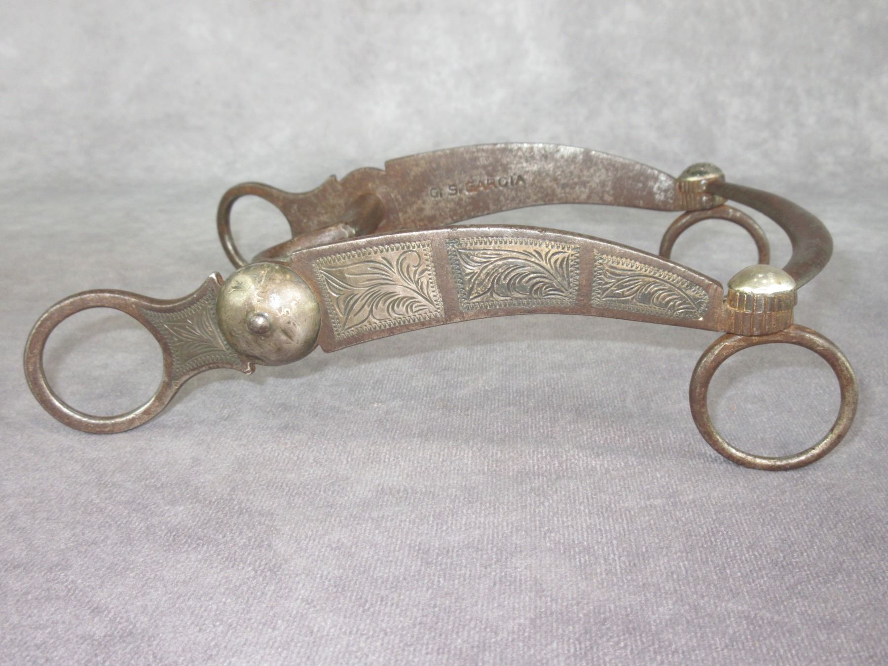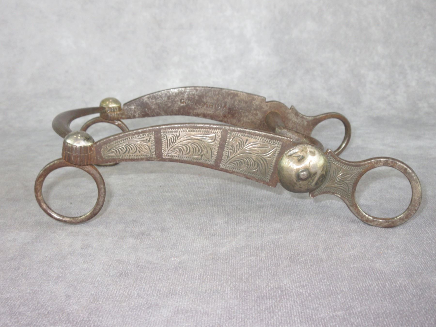 Marked GS Garcia Silver Inlaid Bit- California Cheek- Curb Mouth- Slobber Bar- Decent Condition