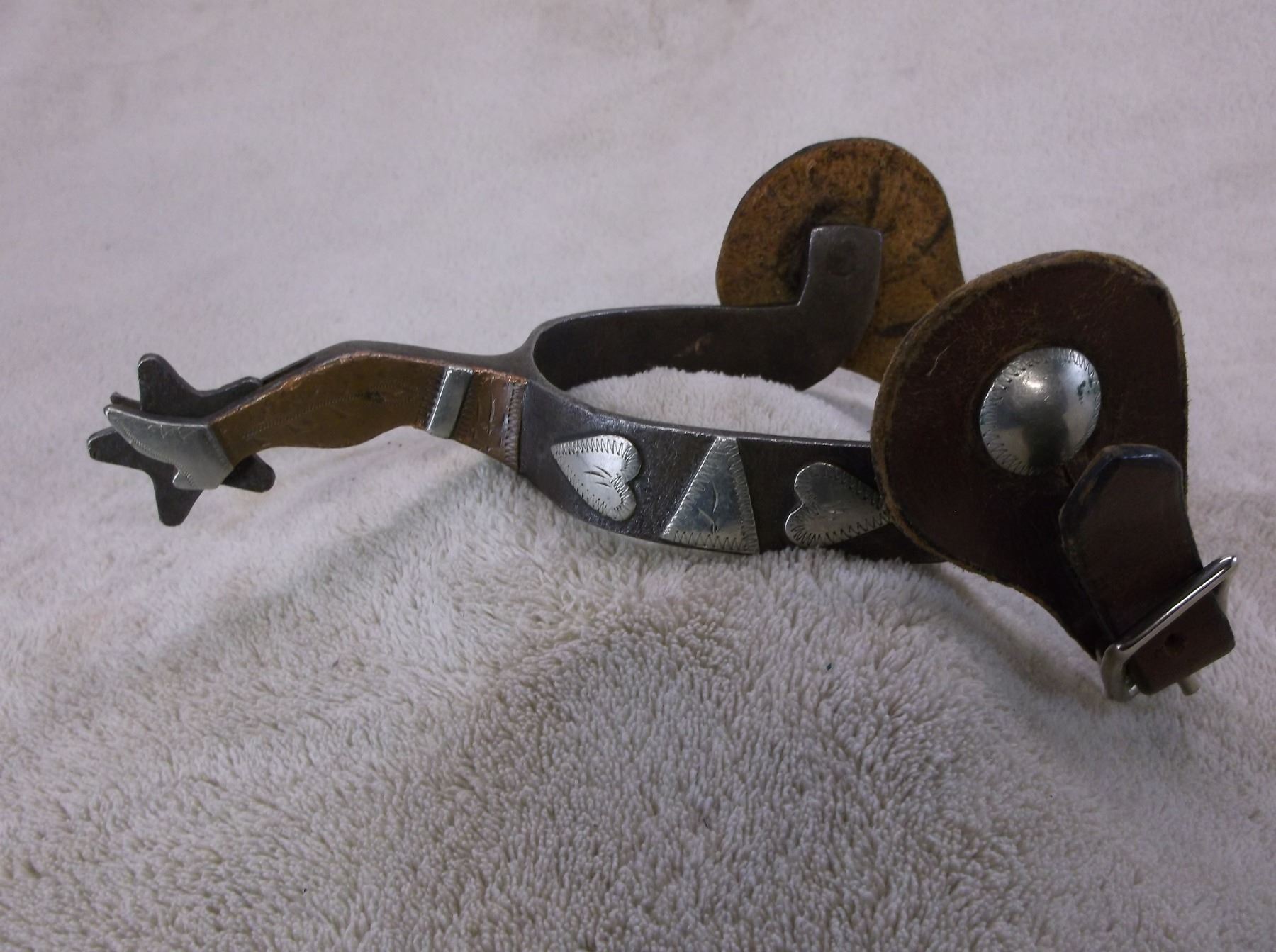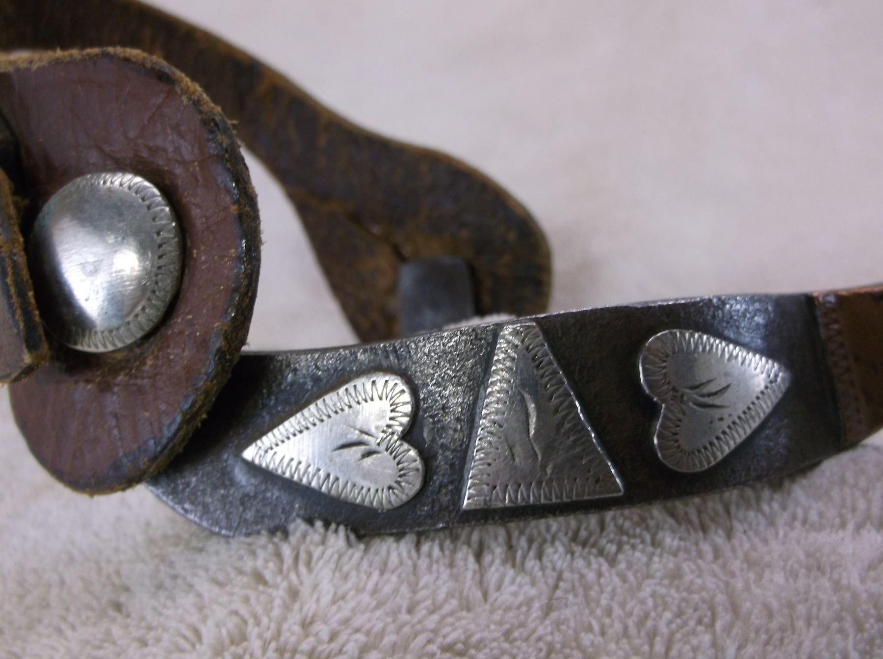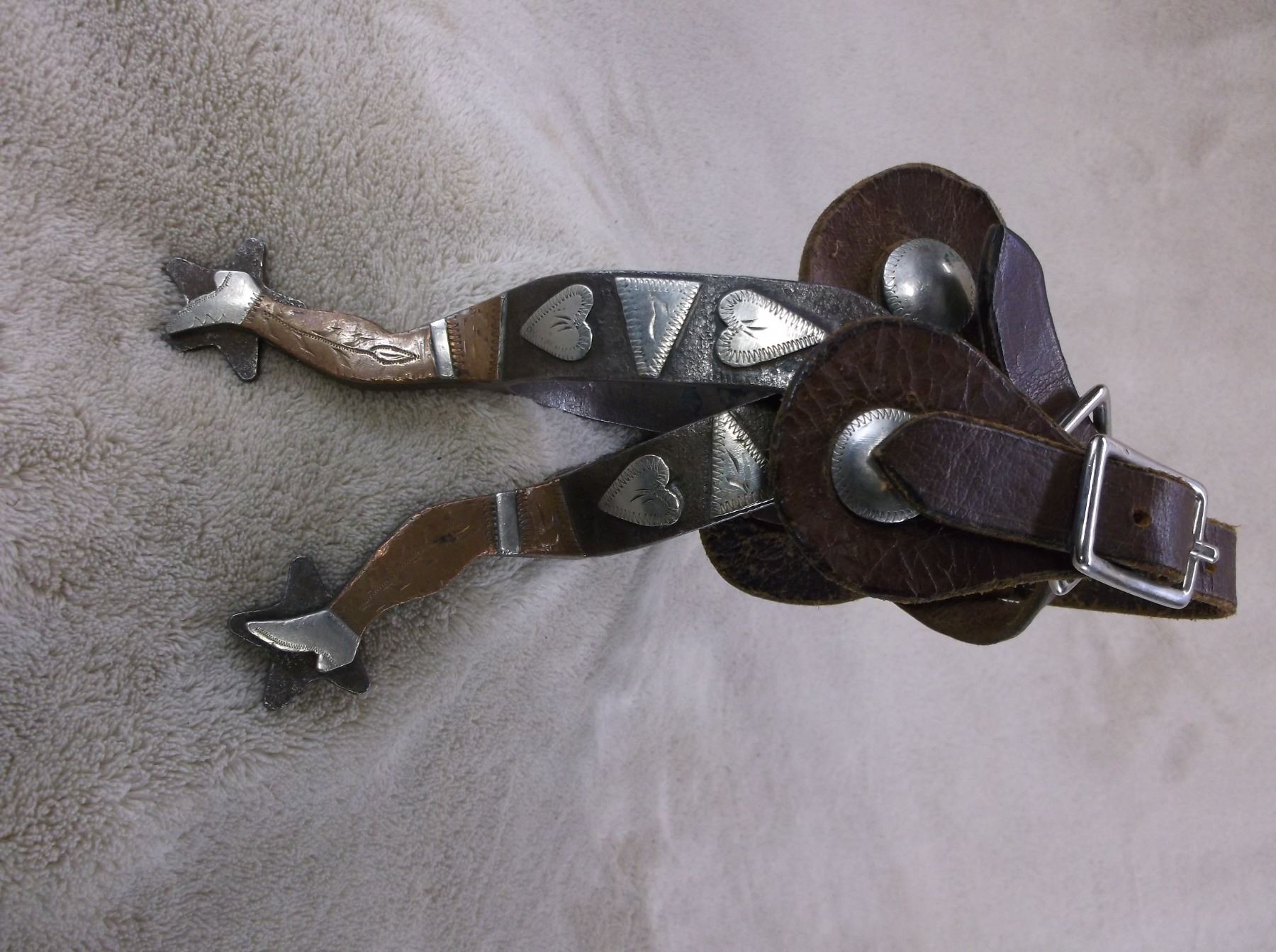 Marked Hall Silver and Copper Overlaid Lady Legs Spurs- .75" Band 2.5" Shanks- Straps