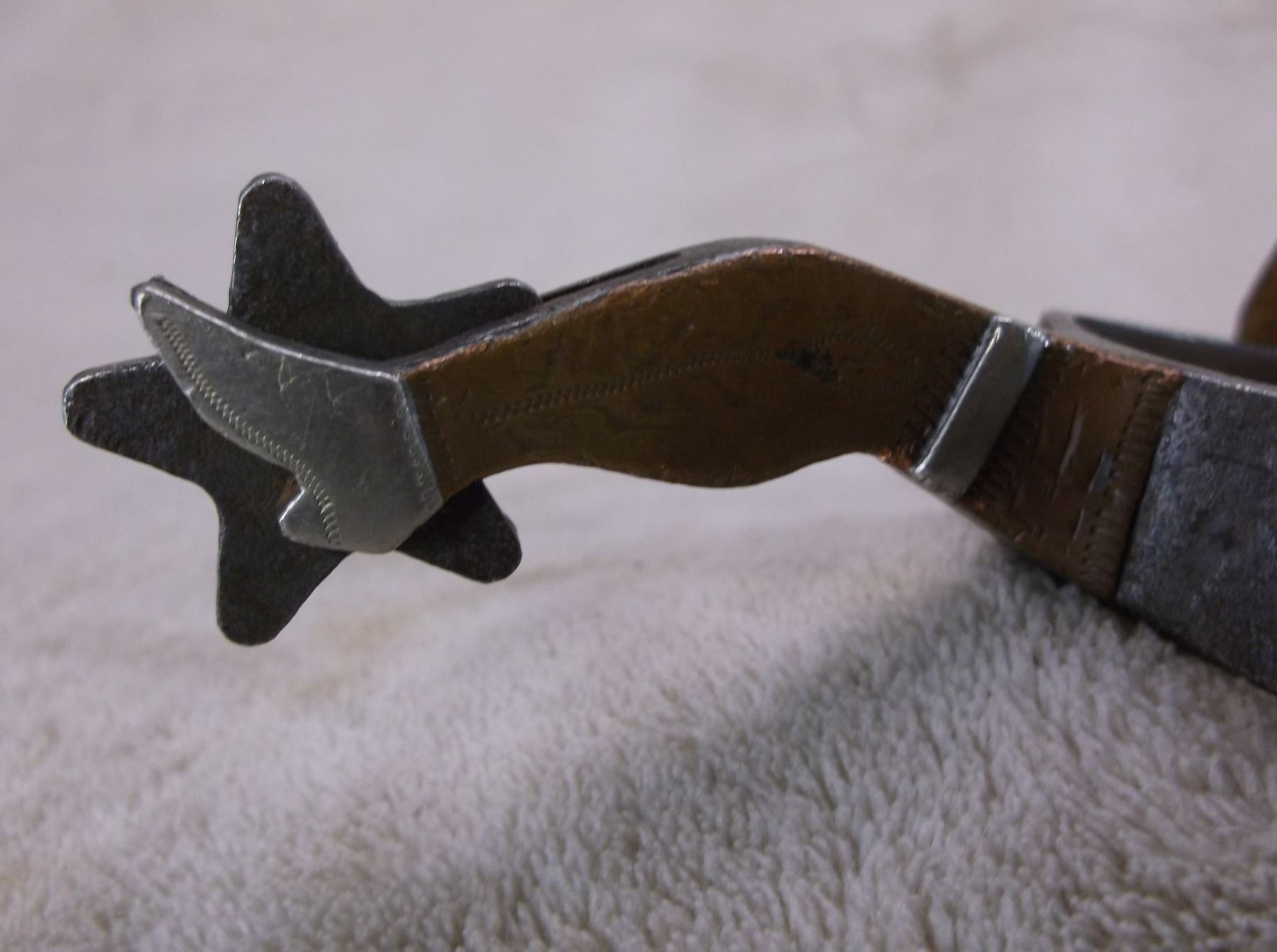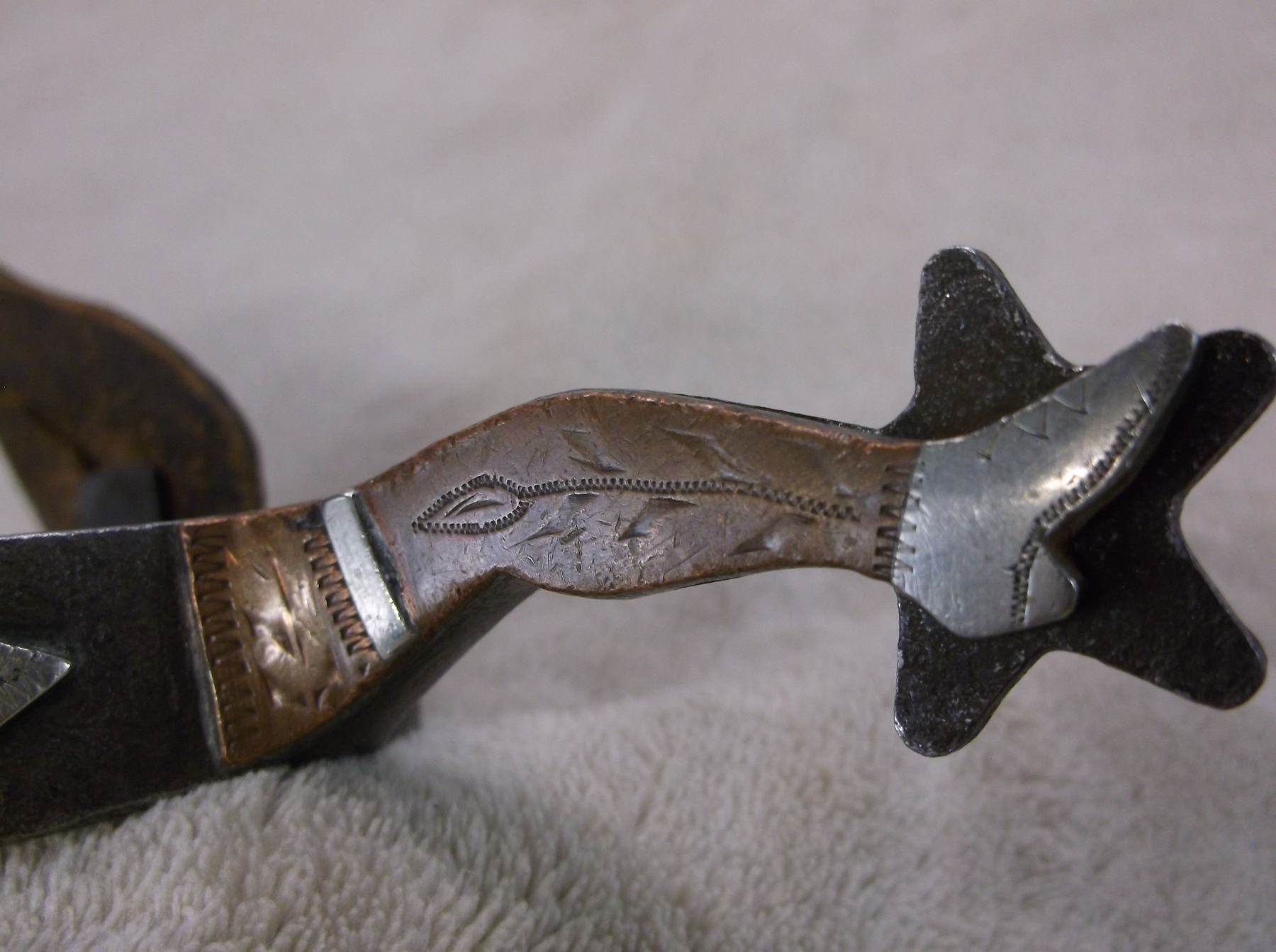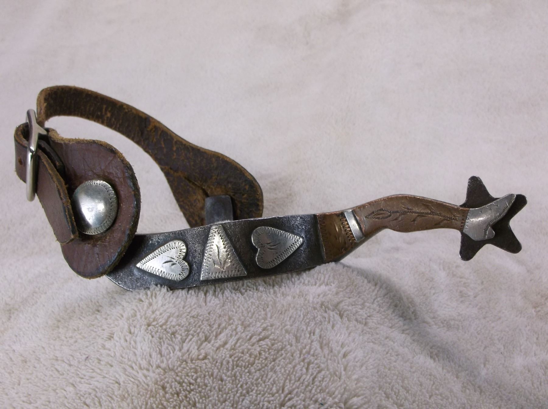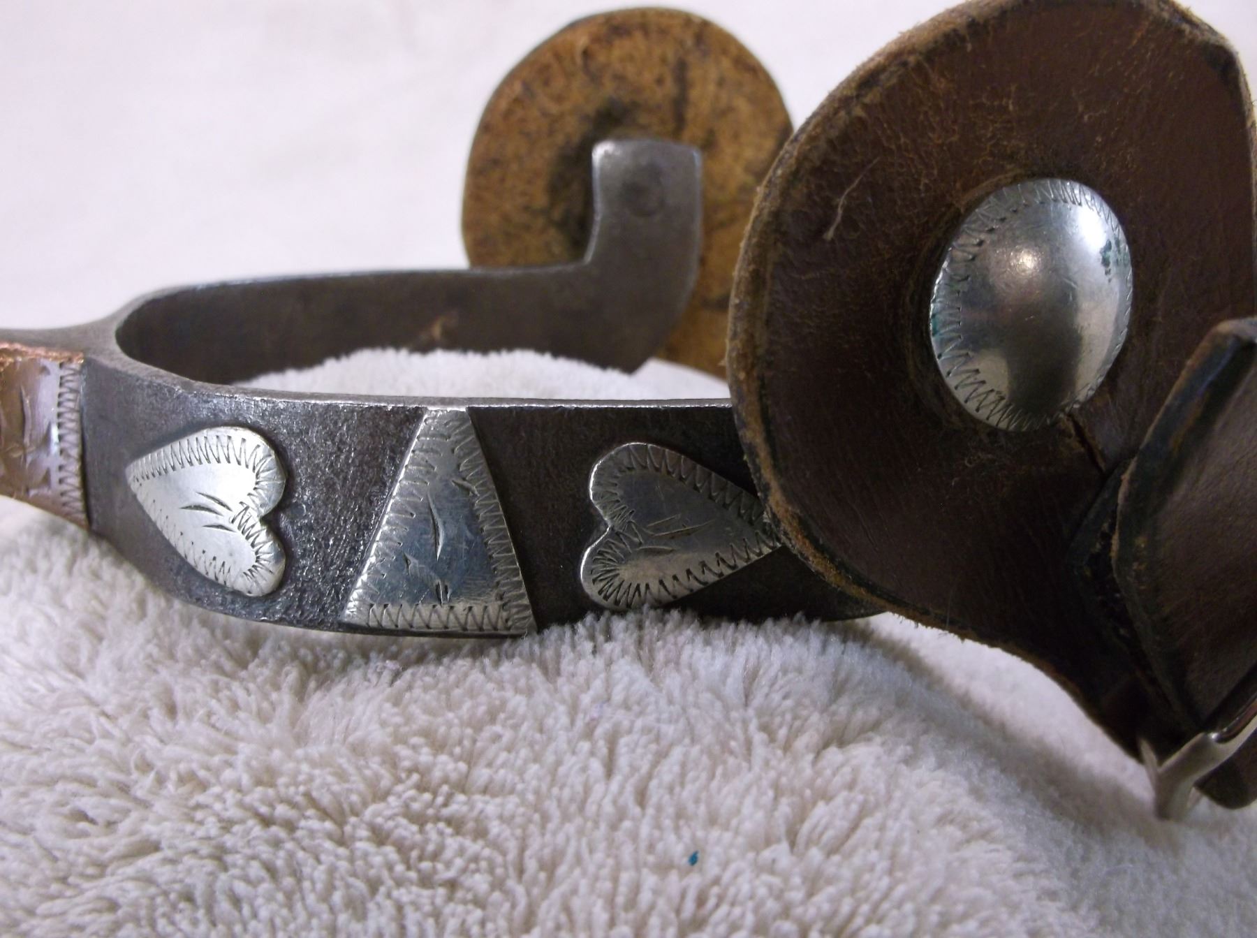 Marked Hall Silver and Copper Overlaid Lady Legs Spurs- .75" Band 2.5" Shanks- Straps
