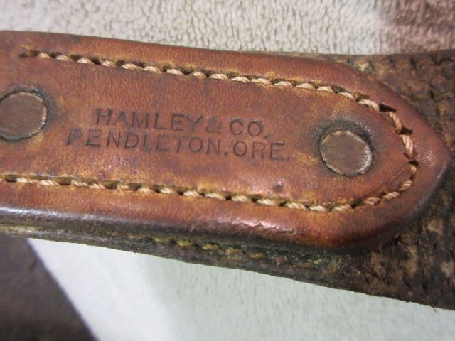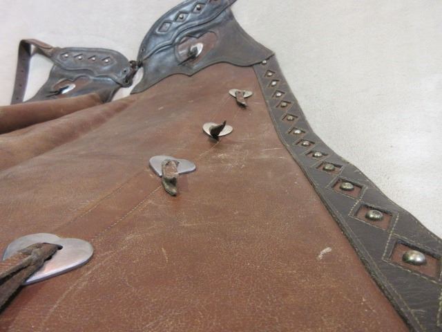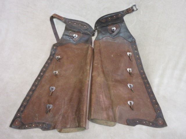 Marked Hamley & Co Pendleton Ore Batwing Chaps- 10 Nickel Heart Conchos- Studded- Double Leather on Legs- Belt Has Been Replaced- 37"L
