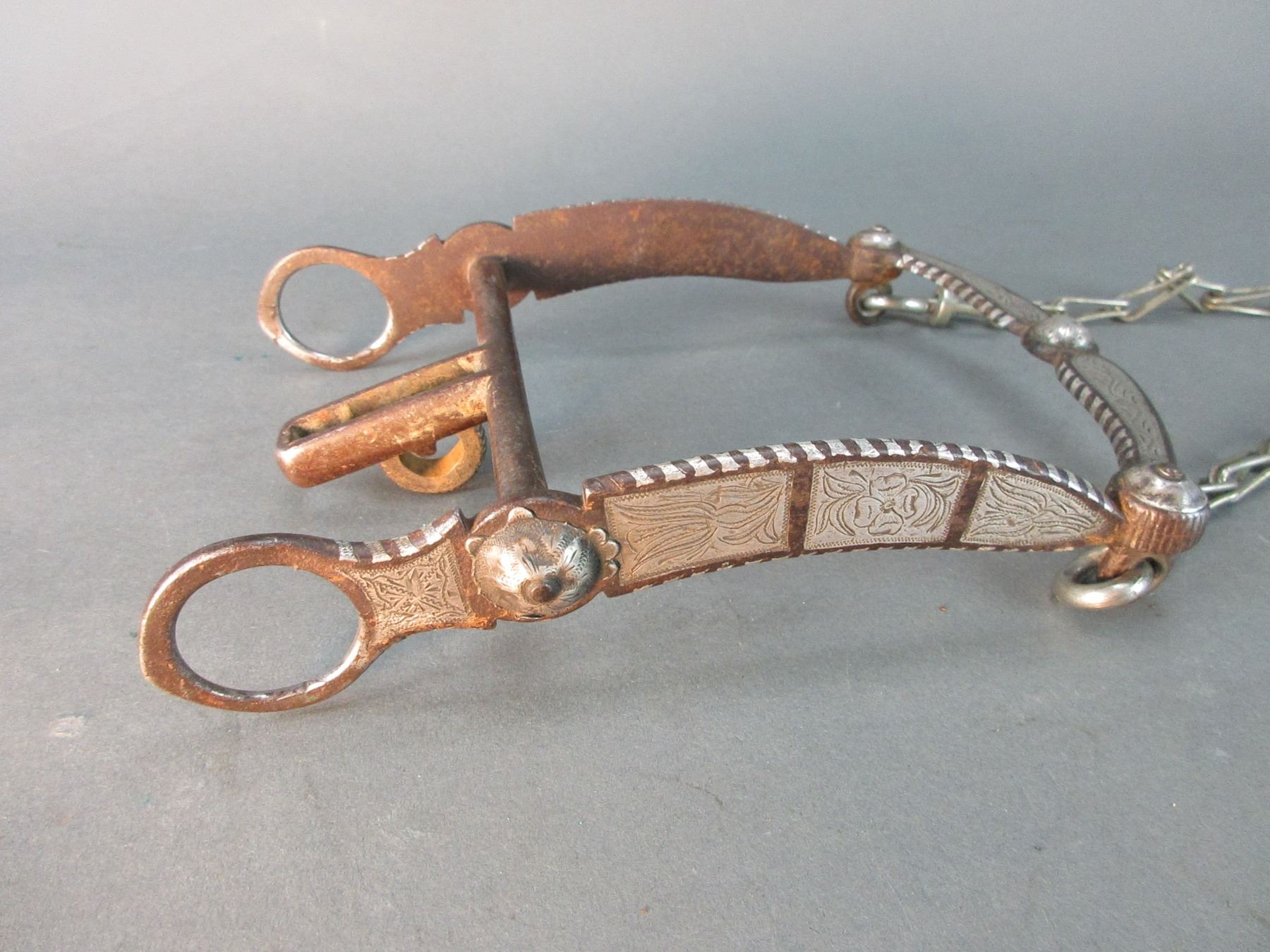 Marked Hamley + Co Pendleton Ore Silver Inlaid Bit- California Cheek- Halfbreed Mouth- Slobber Bar-Rain Chains- Good Condition