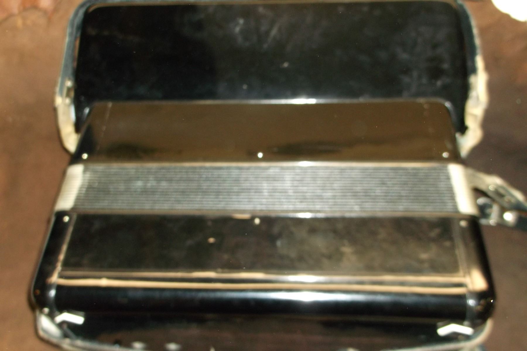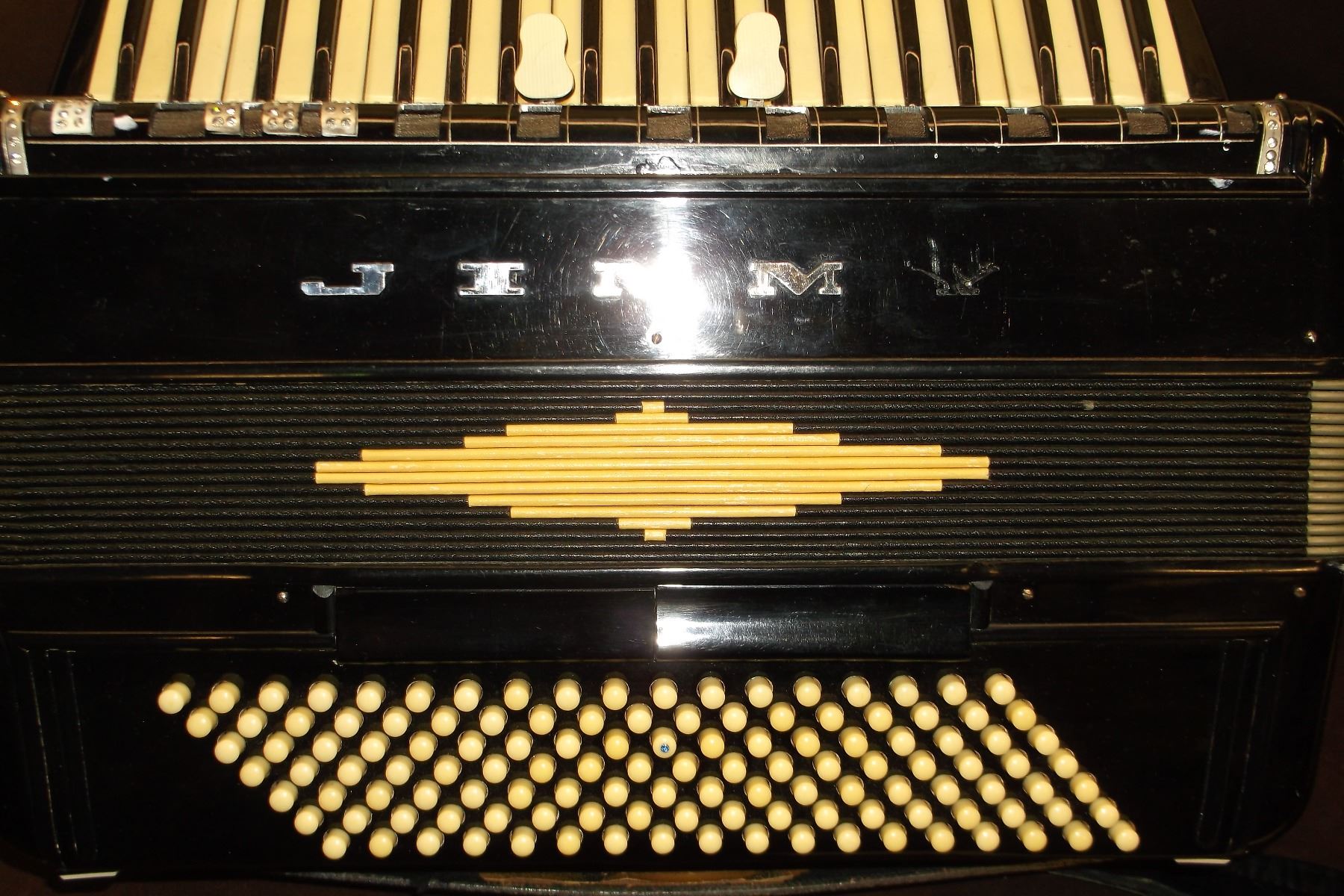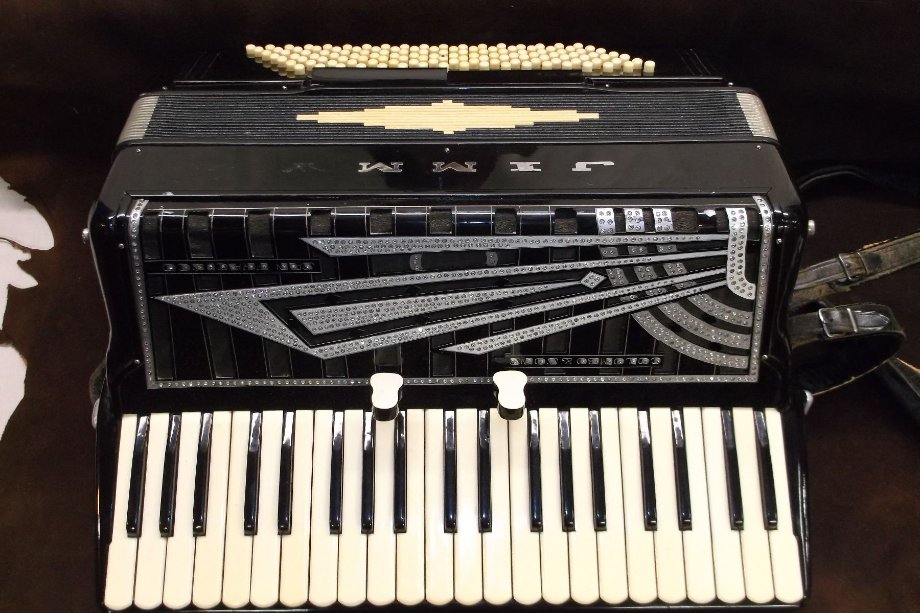 Marked Jimmy Columbo & Sons San Francisco Accordian with Case- Y is missing- Case 21"W X 18"D