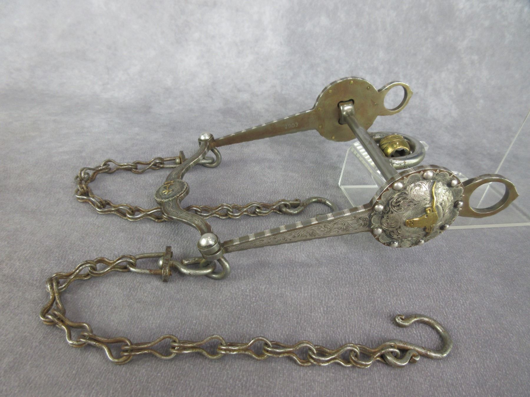 Marked Kress 2003 Silver Inlaid Bit- El Toro Cheek- Wyoming Halfbreed Mouth- Slobber Bar With DH- Rein Chains With Swivels- 2.5" Steerhead Conchos- Unused