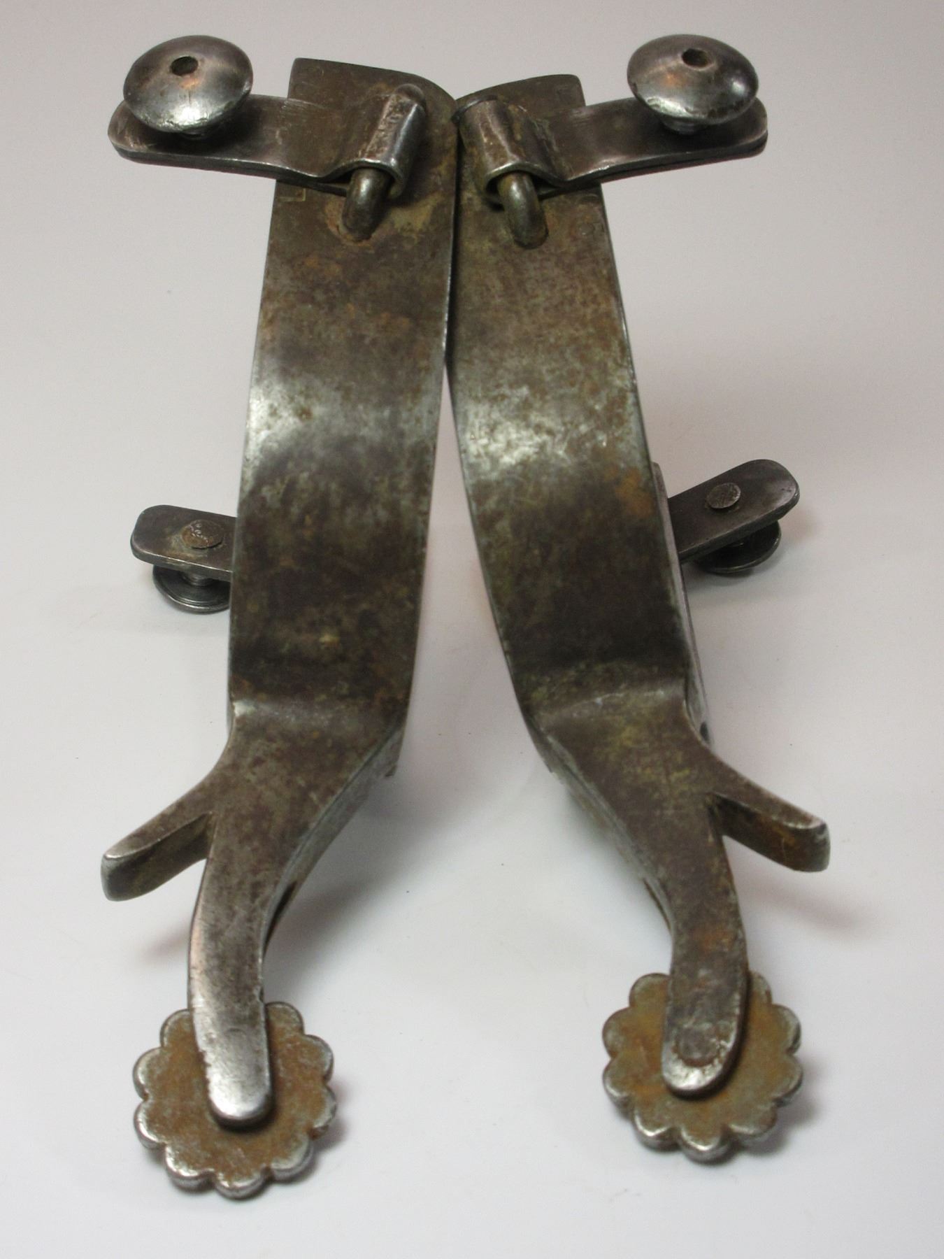 Marked LWH005 Silver Inlaid spurs- 1" Bands- 2.25" Shanks- 10 Point Rowels- Chap Guards