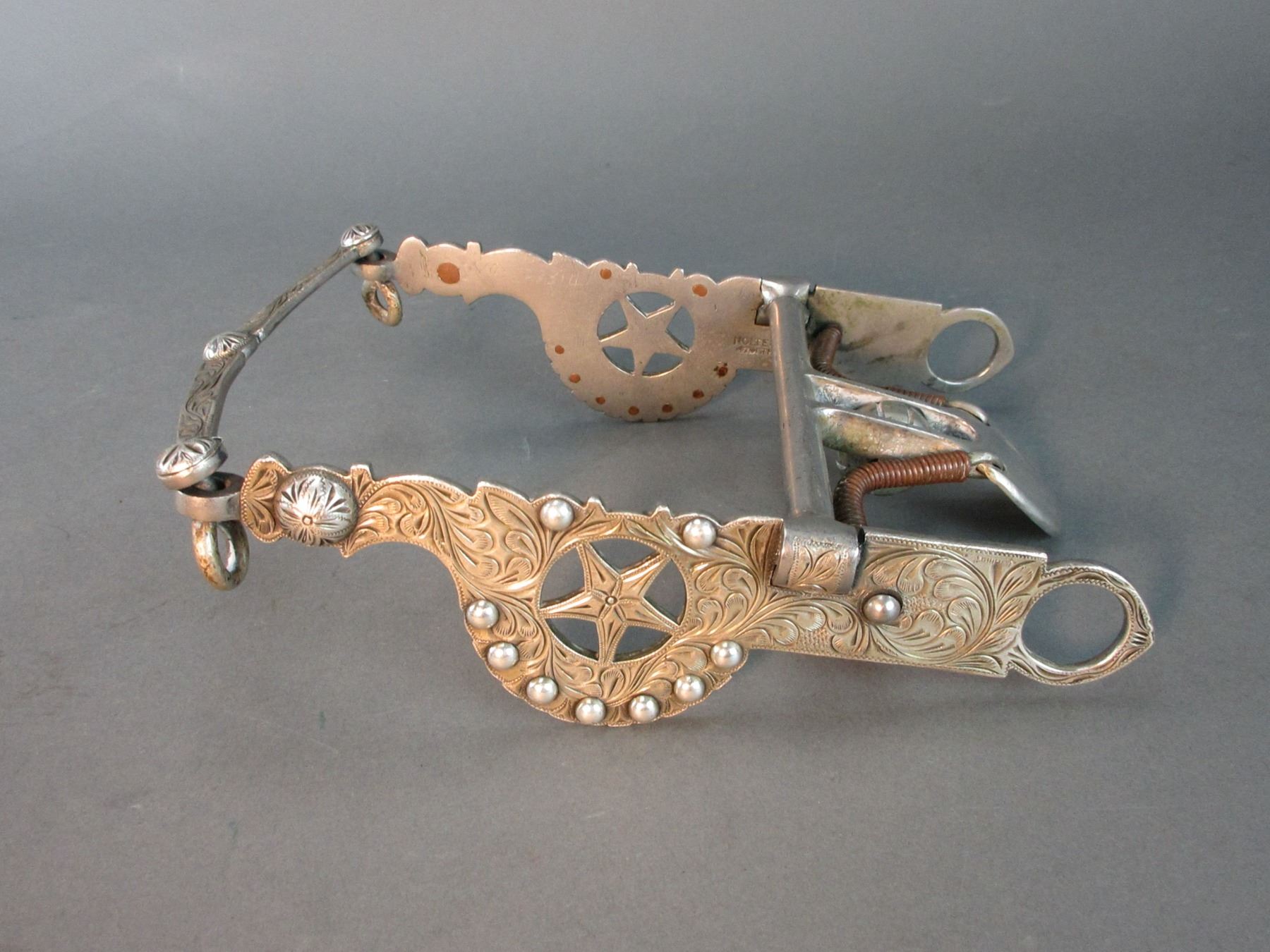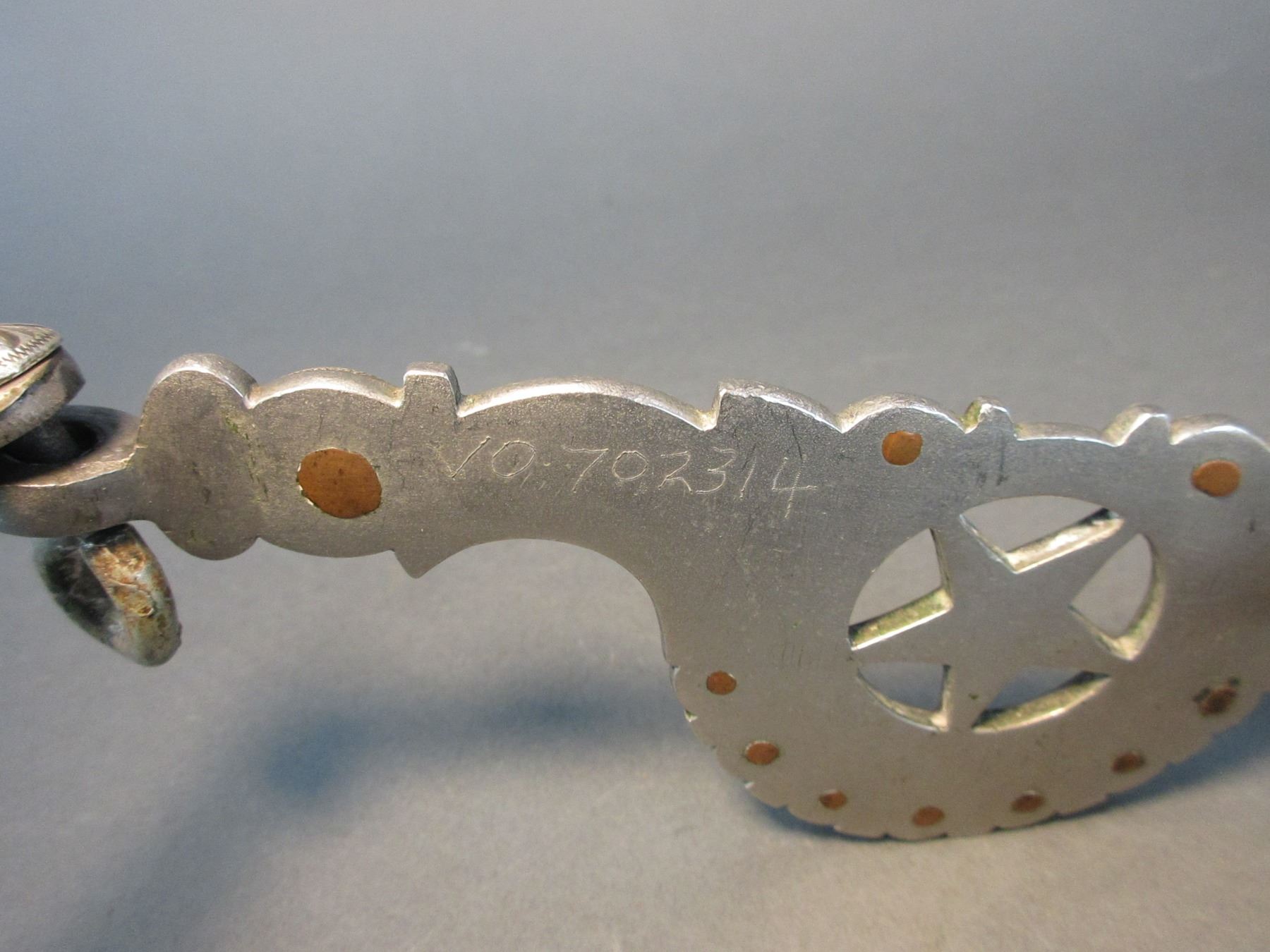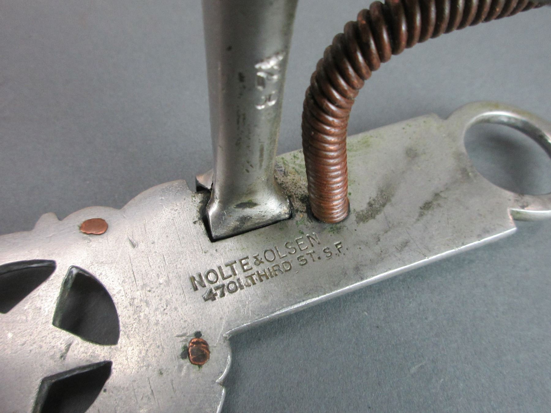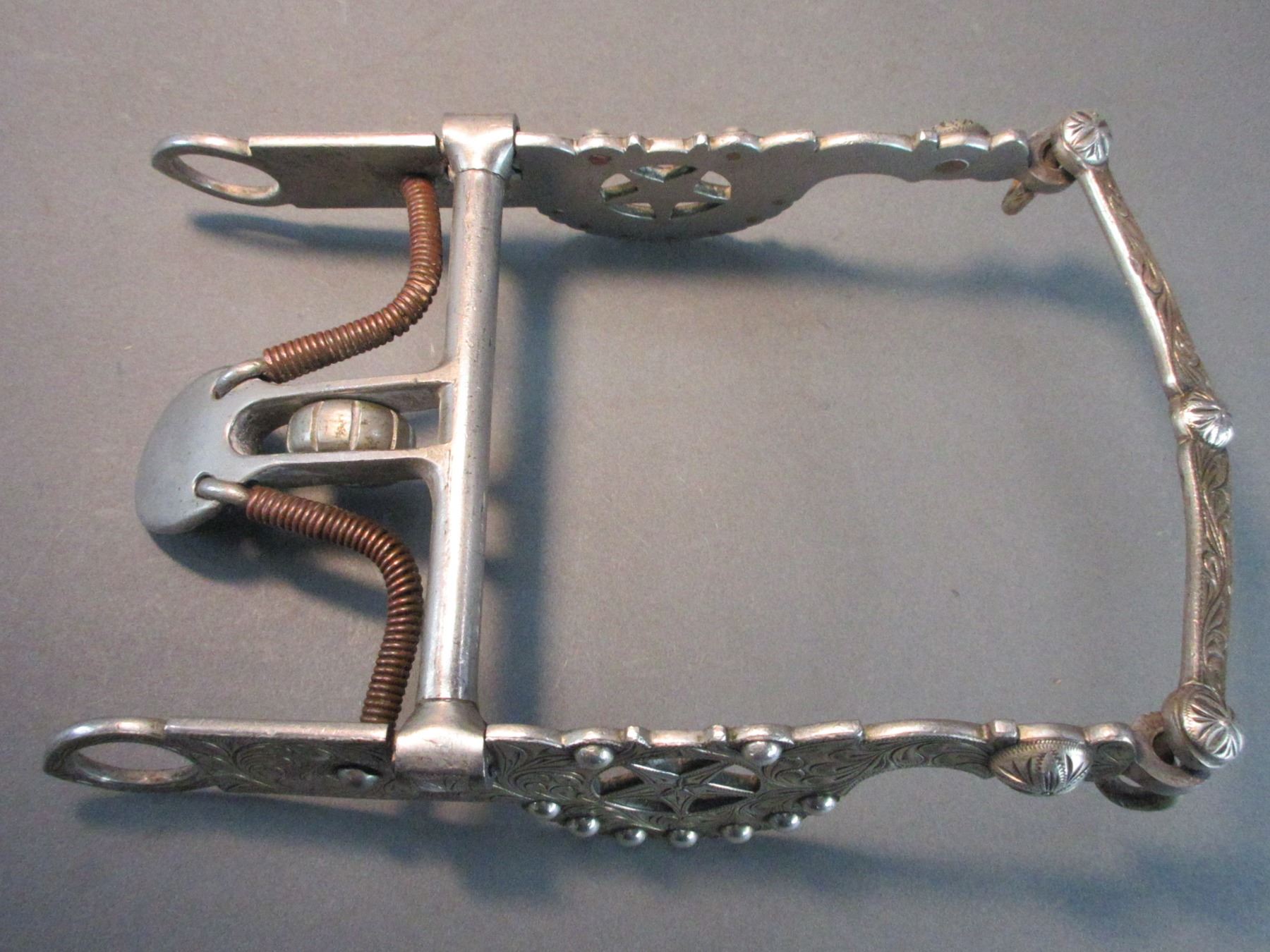 Marked Nolte Olsen 4701 Third St SF Silver Overlaid Bit- Attributed To Raphael Gutierrez- Santa Barbara Elko Star Cheek- Loose Jaw Spoon Mouth- Slobber Bar- Rein Chain Swivels- Good Condition