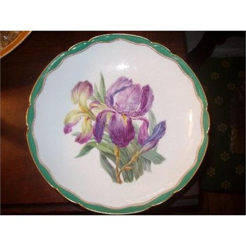 gold border. The underside of the compote is painted with pairs, roses & other flowers with a monogrammed D. The pedestal and foot of the compote also has painted flowers. All of the painting on the compote was done by a master of porcelain painting. The compote is marked on the bottom in green paint Laroche Palais Royal. The Shops & Galleries in the Palais Royal became one of the Paris's leisure centers with luxury items that attracted rich foreign tourist as well as local buyers. Very good condition. Height 6" width of compote 9