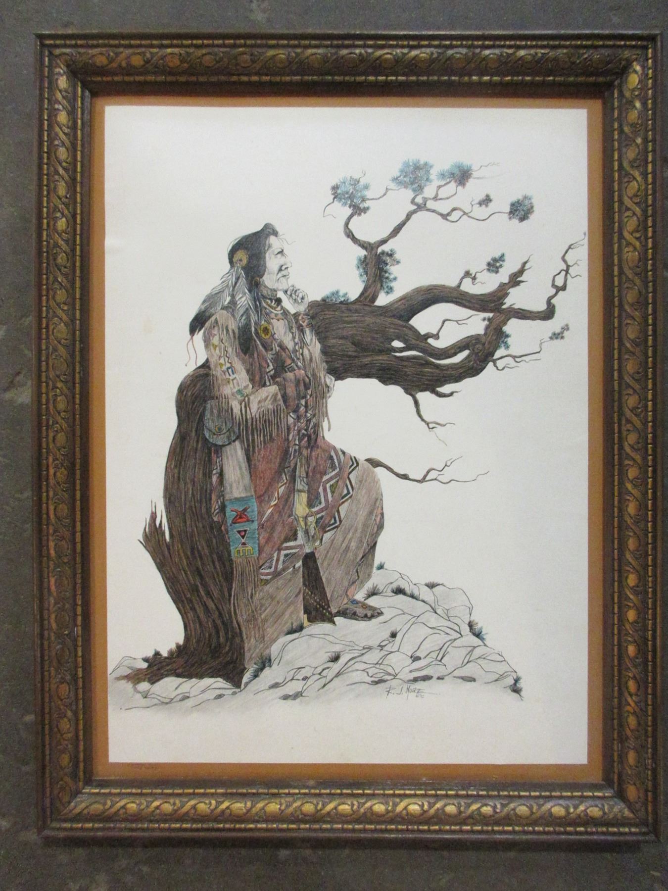 Marked RJ Moore 1970 Native Print- 26" X 21"