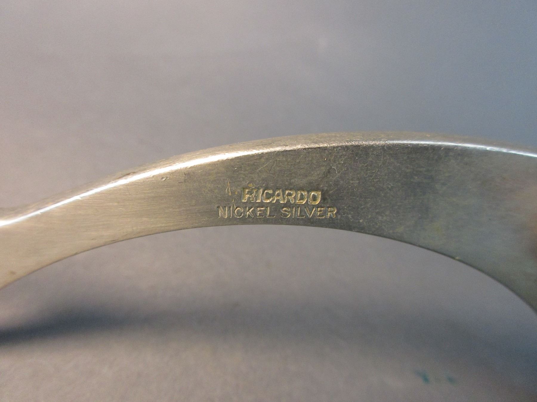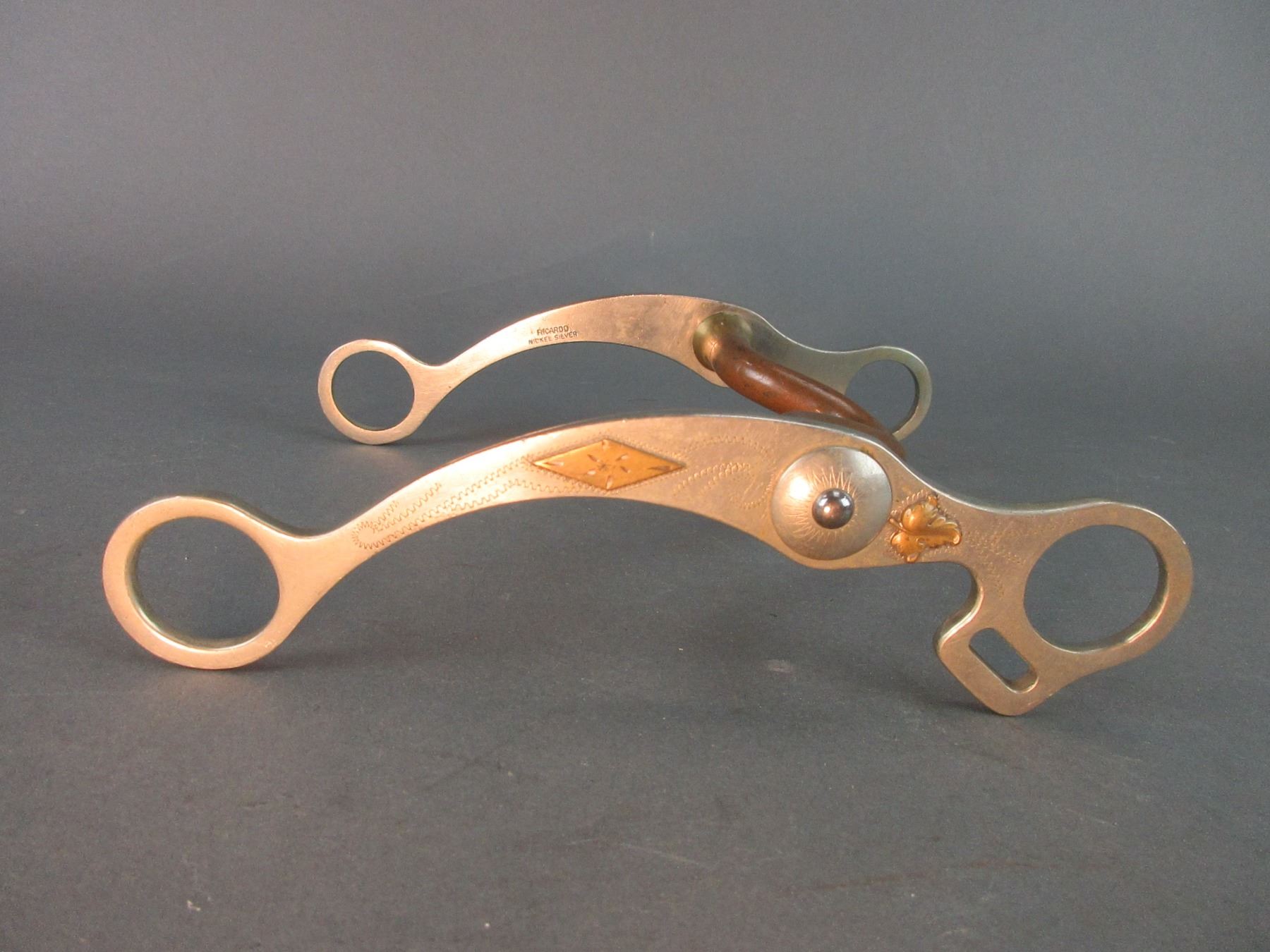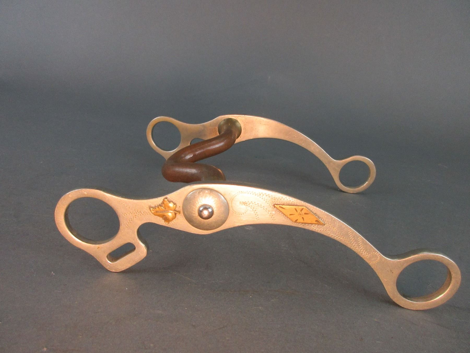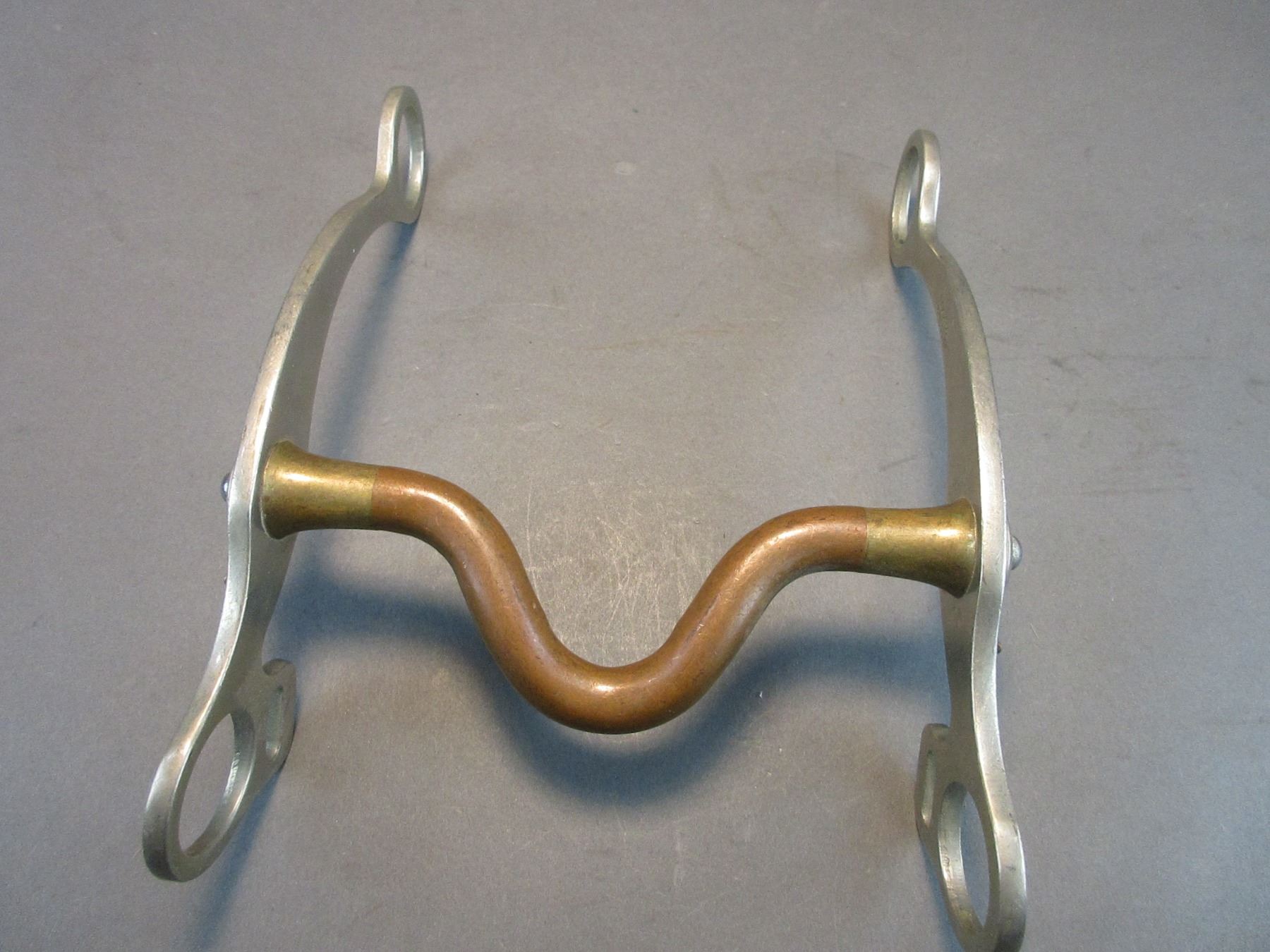 Marked Ricardo Nickel Silver Bit With Brass Overlays- Texas Cheek- Curb Mouth- Engraved- Good Condition