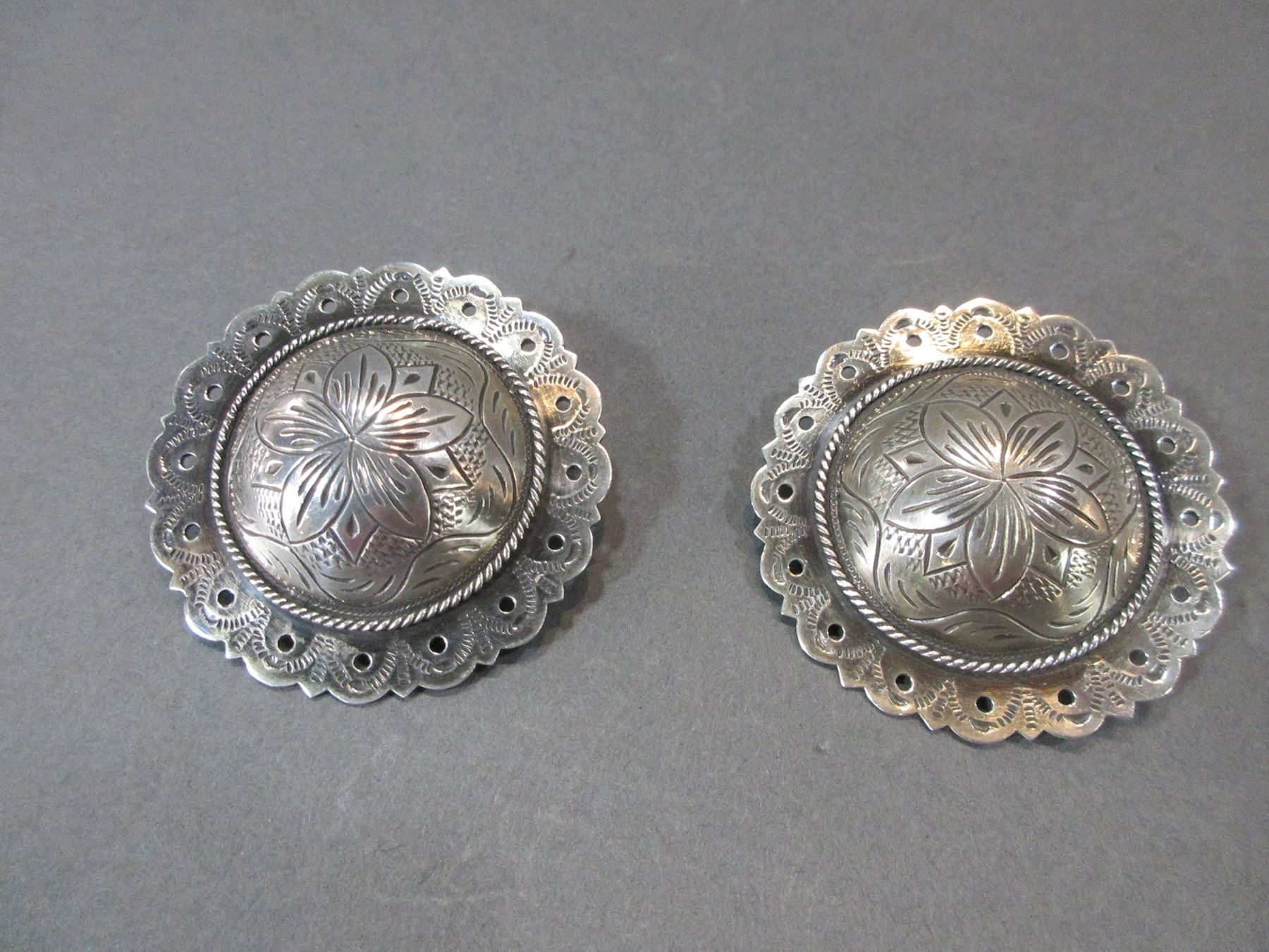 Marked Rocking A (Andreas Rombach) Domed Engraved Scalloped 2" Silver Conchos- Unused