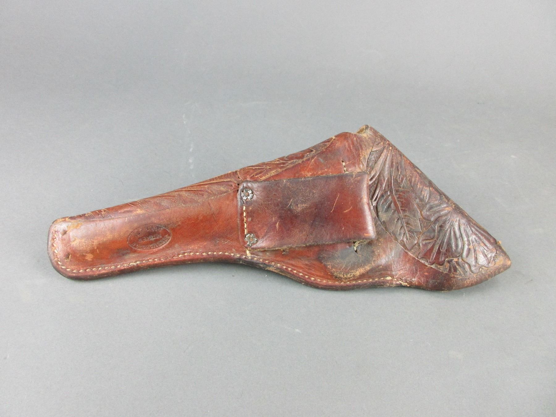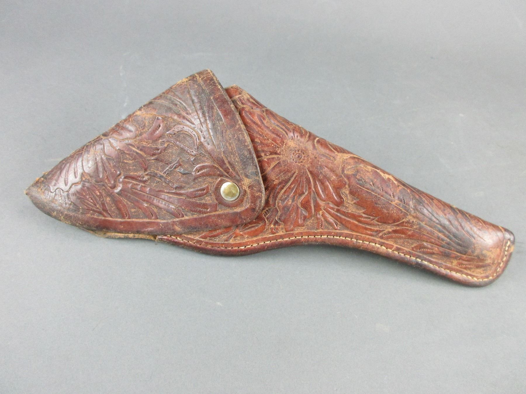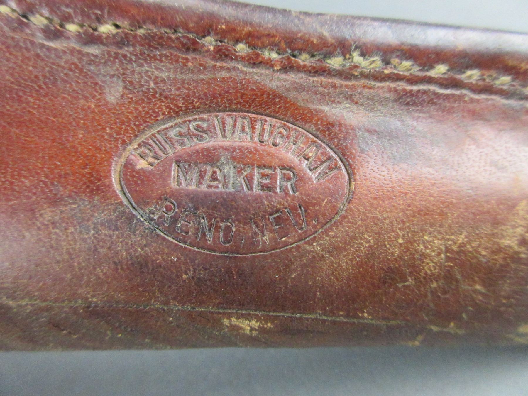 Marked Russ Vaughn Maker Reno Nev Hand Carved Flap Holster- 9.5"- Fair Condition