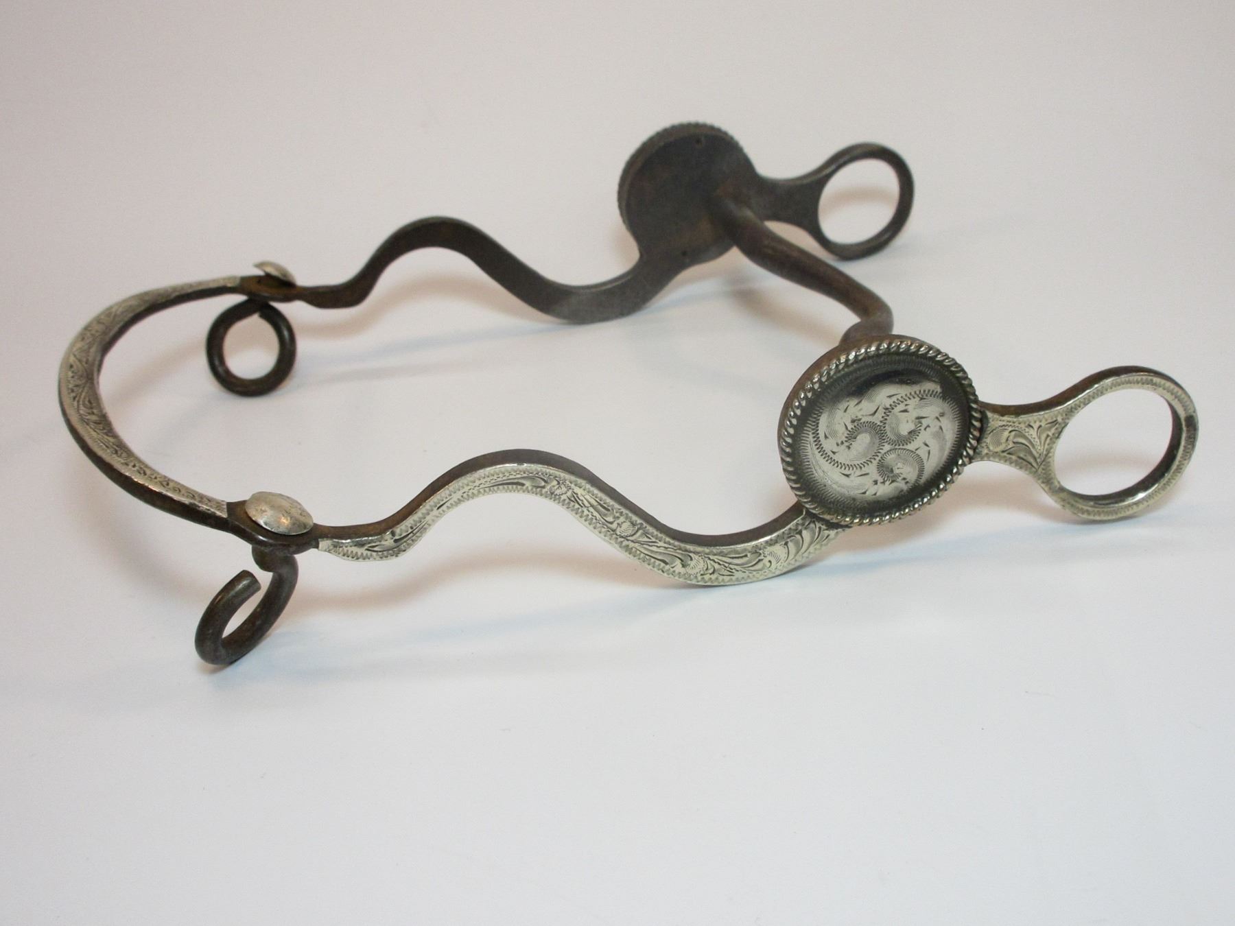 Marked S Ruano 81 Silver Overlaid Bit- Martinez Cheek Curb Mouth- Slobber Bar- Rein Chain Swivels