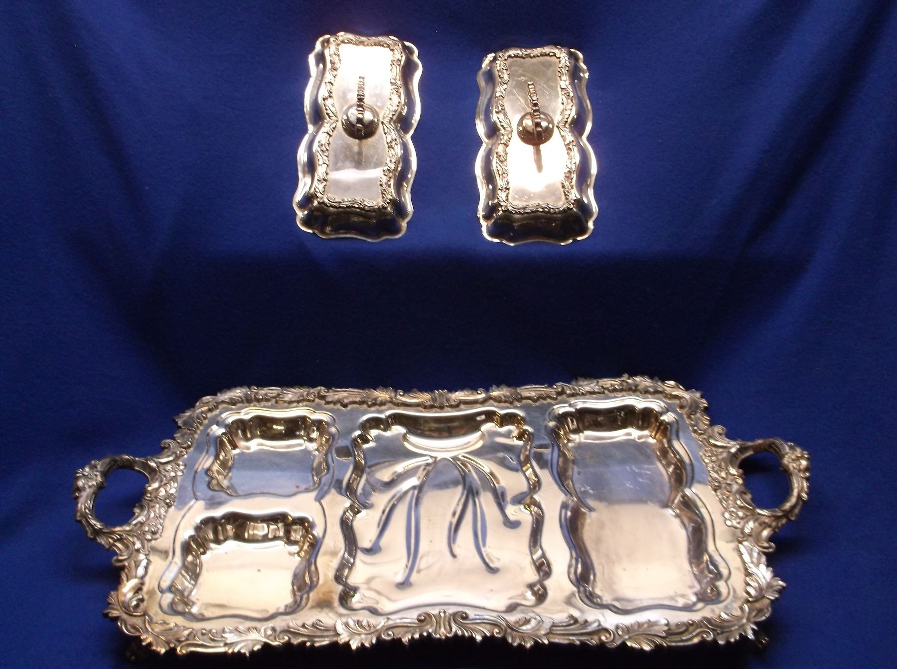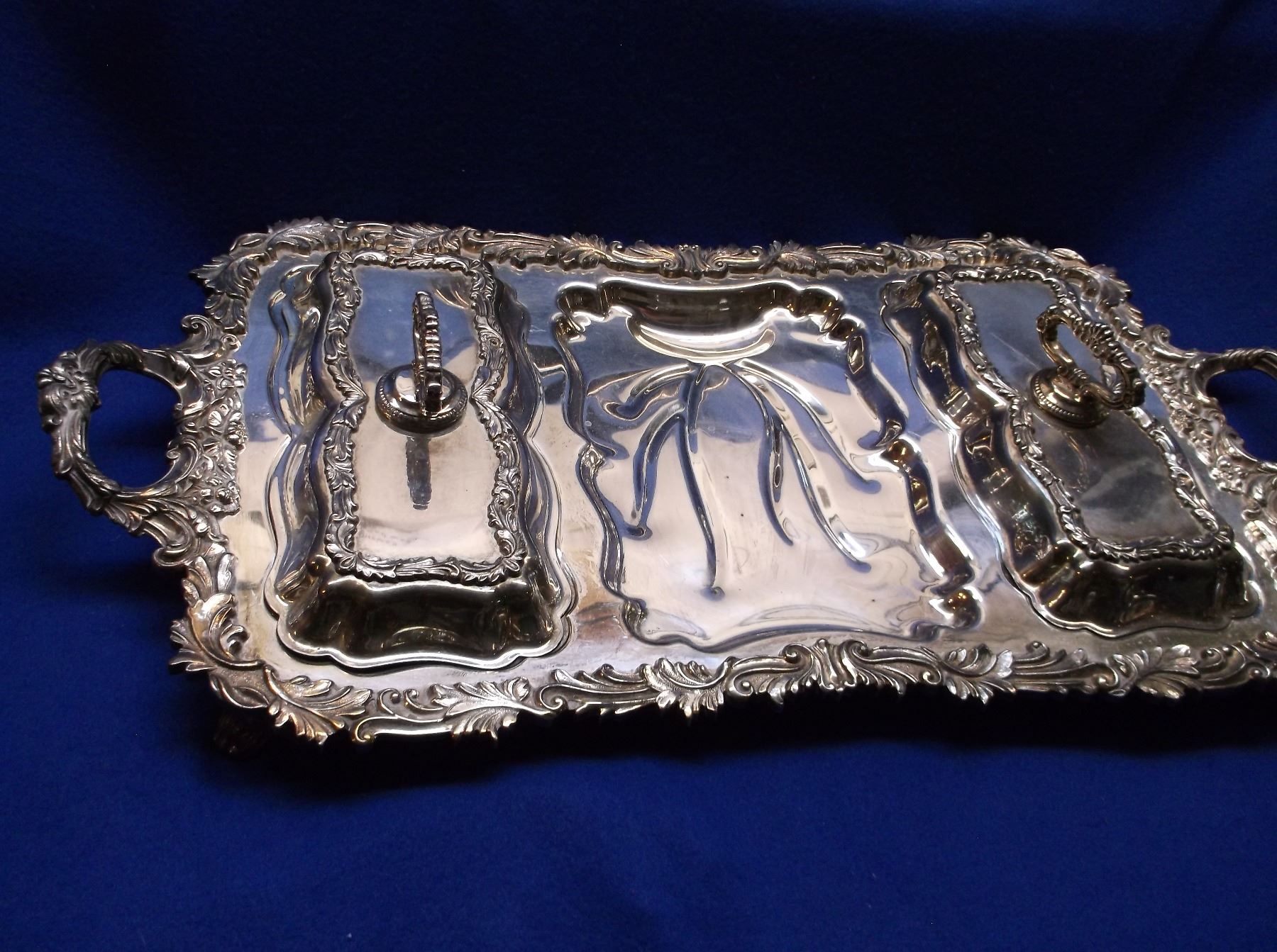 Marked Silver on Copper 271 Serving Tray- One Piece has a Broken Handle and Does not Match