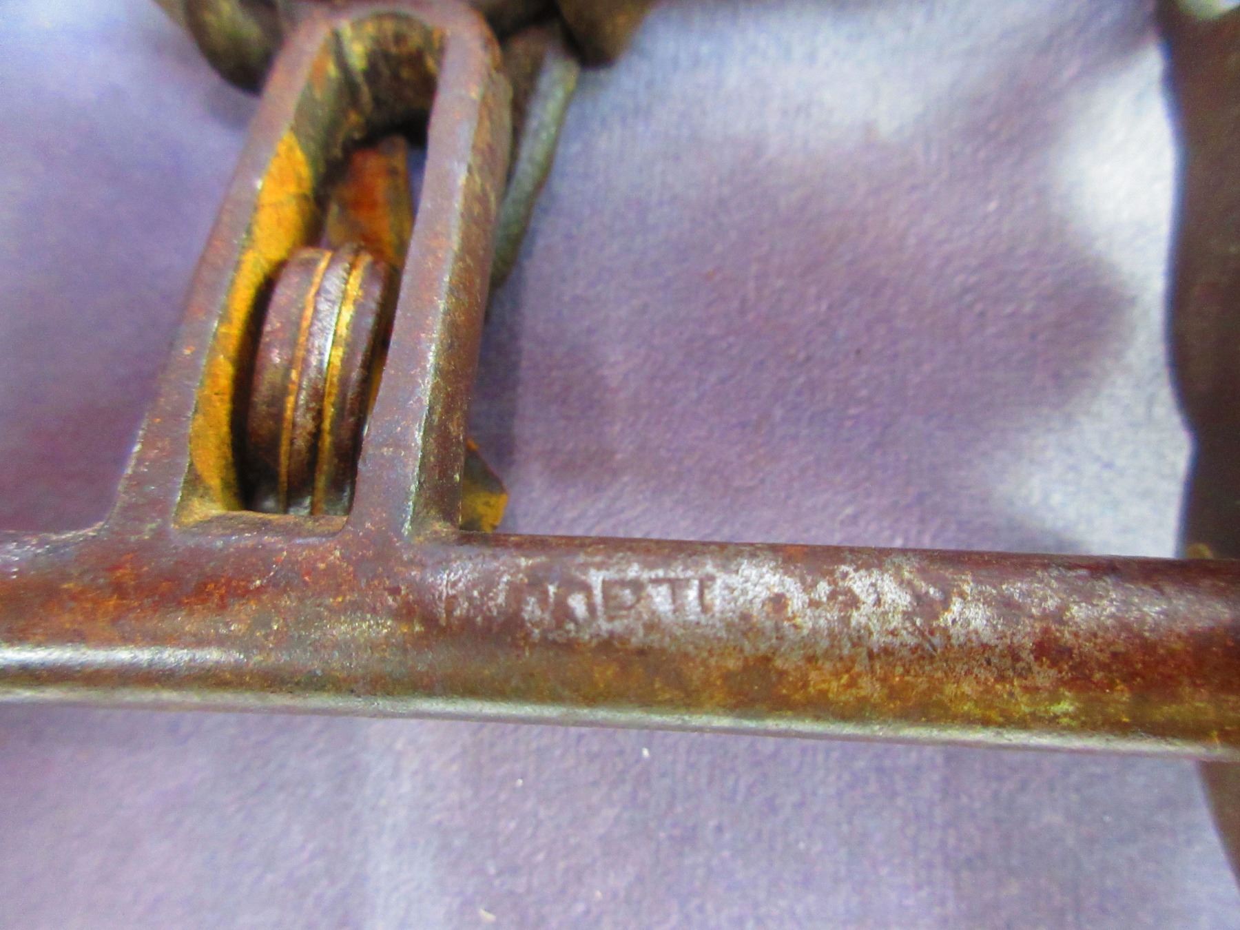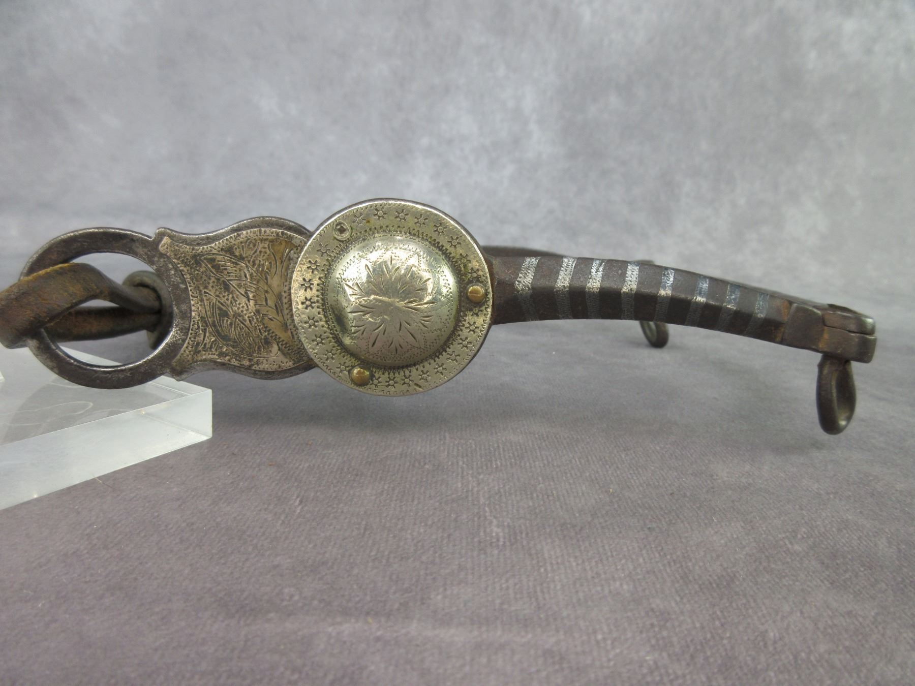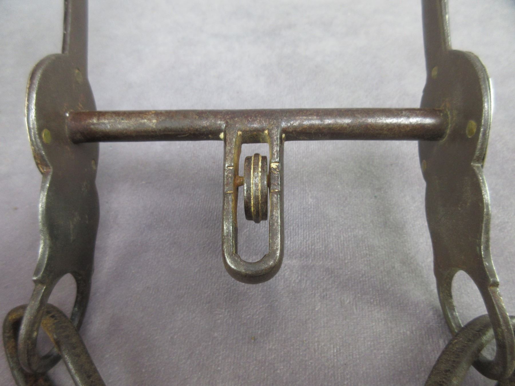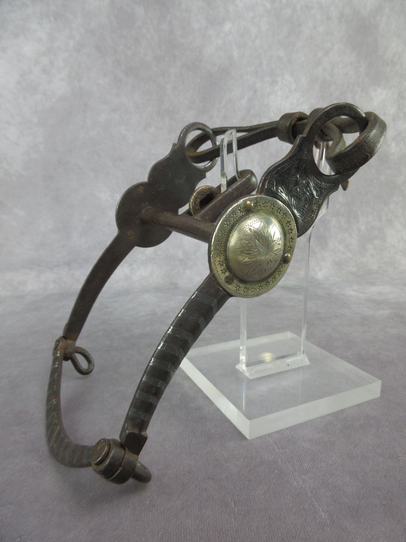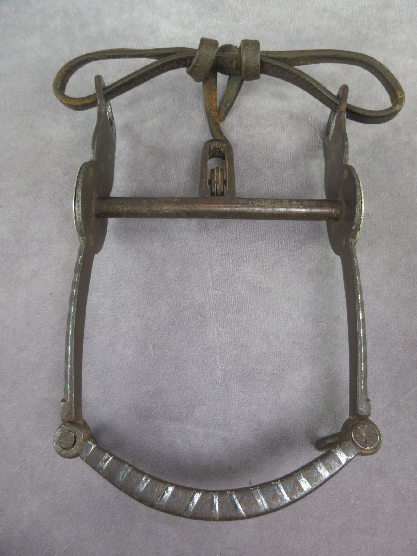 Marked Squashed Ms Portland Ore Silver Inlaid Bit- California Cheek- Halfbreed Mouth- Slobber Bar- Chevron Pattern- Pretty Good Condition- Cap On One Rein Chain Swivel Is Missing- Portland Mark Is Faint