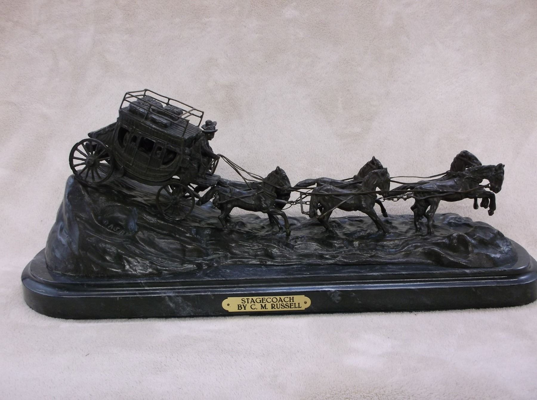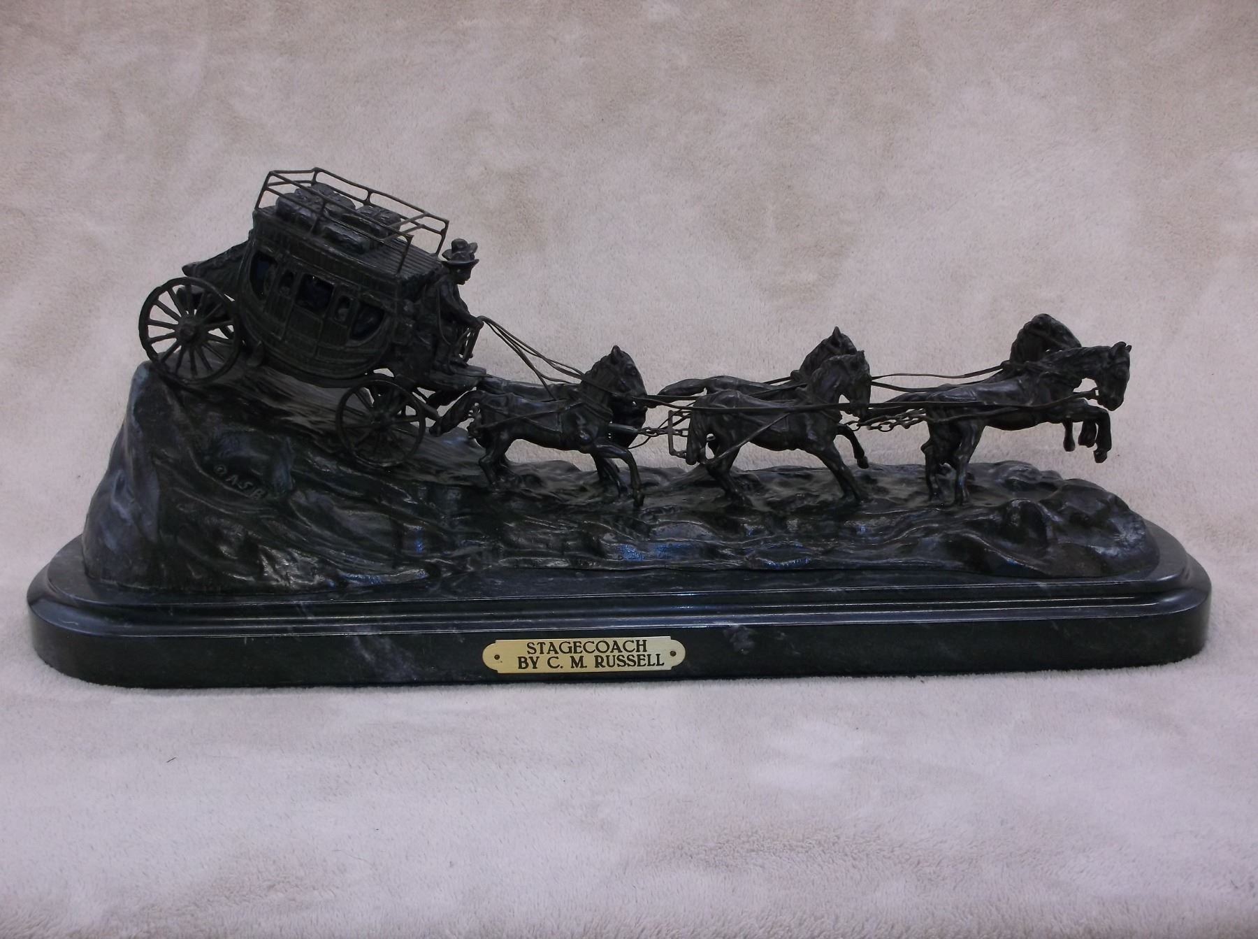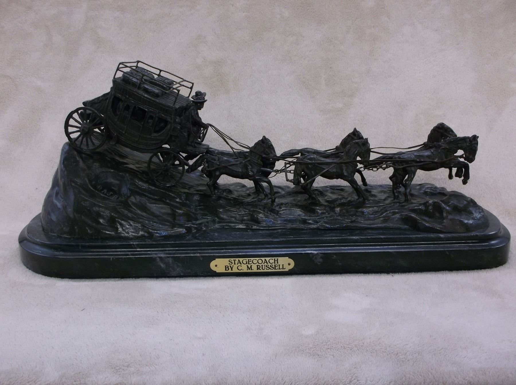 Marked "Stagecoach" By CM Russell Copyright ASB Bronze- 22"L X 9"H X 8.5"D
