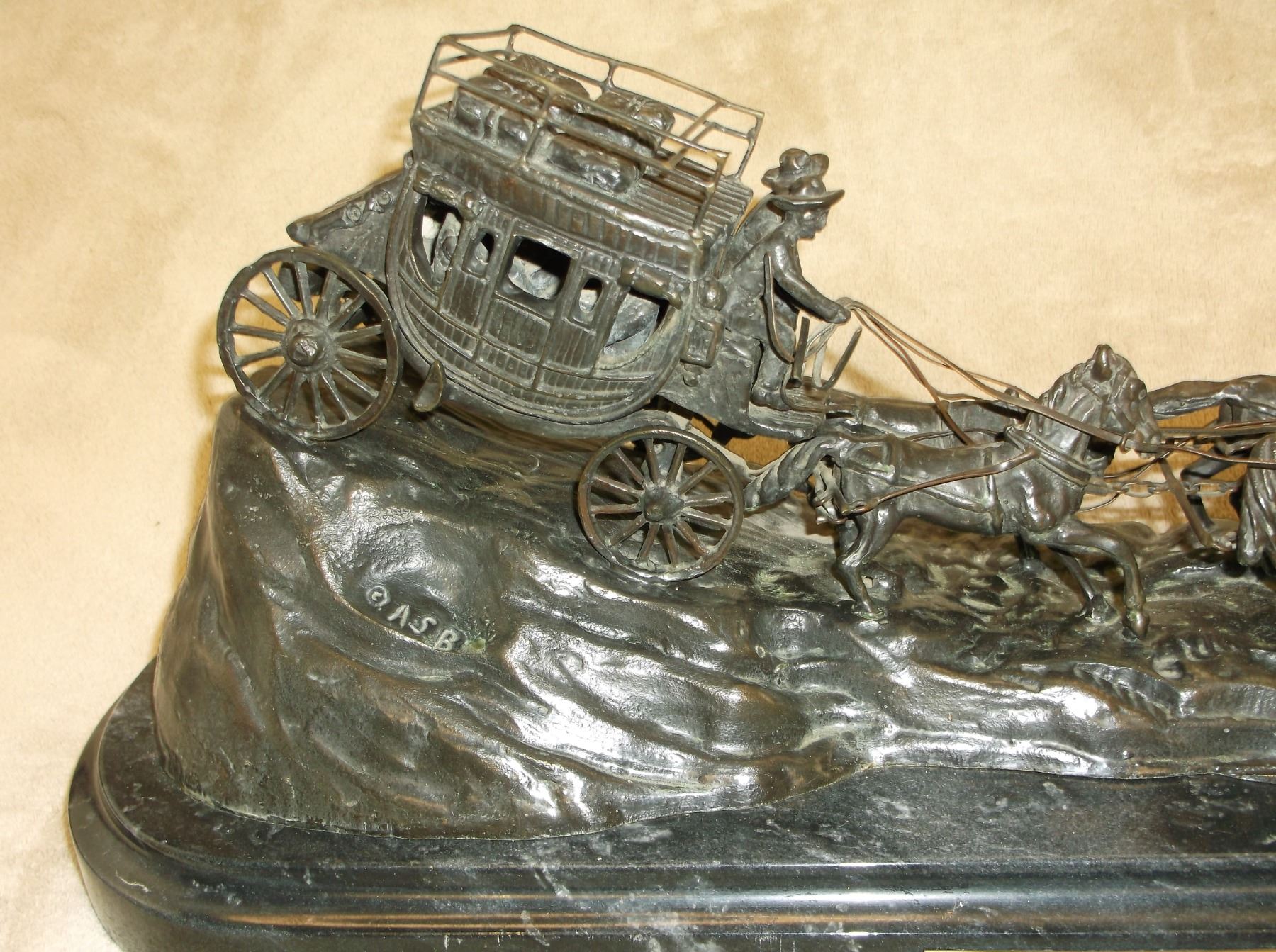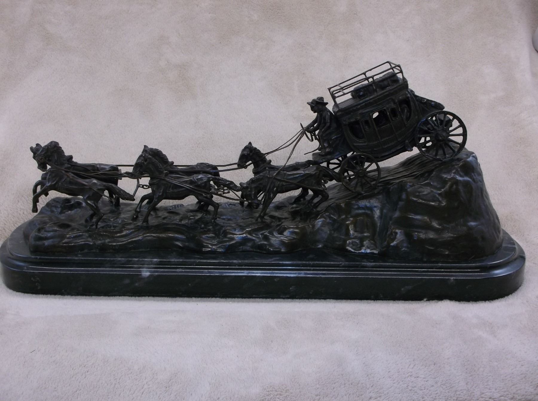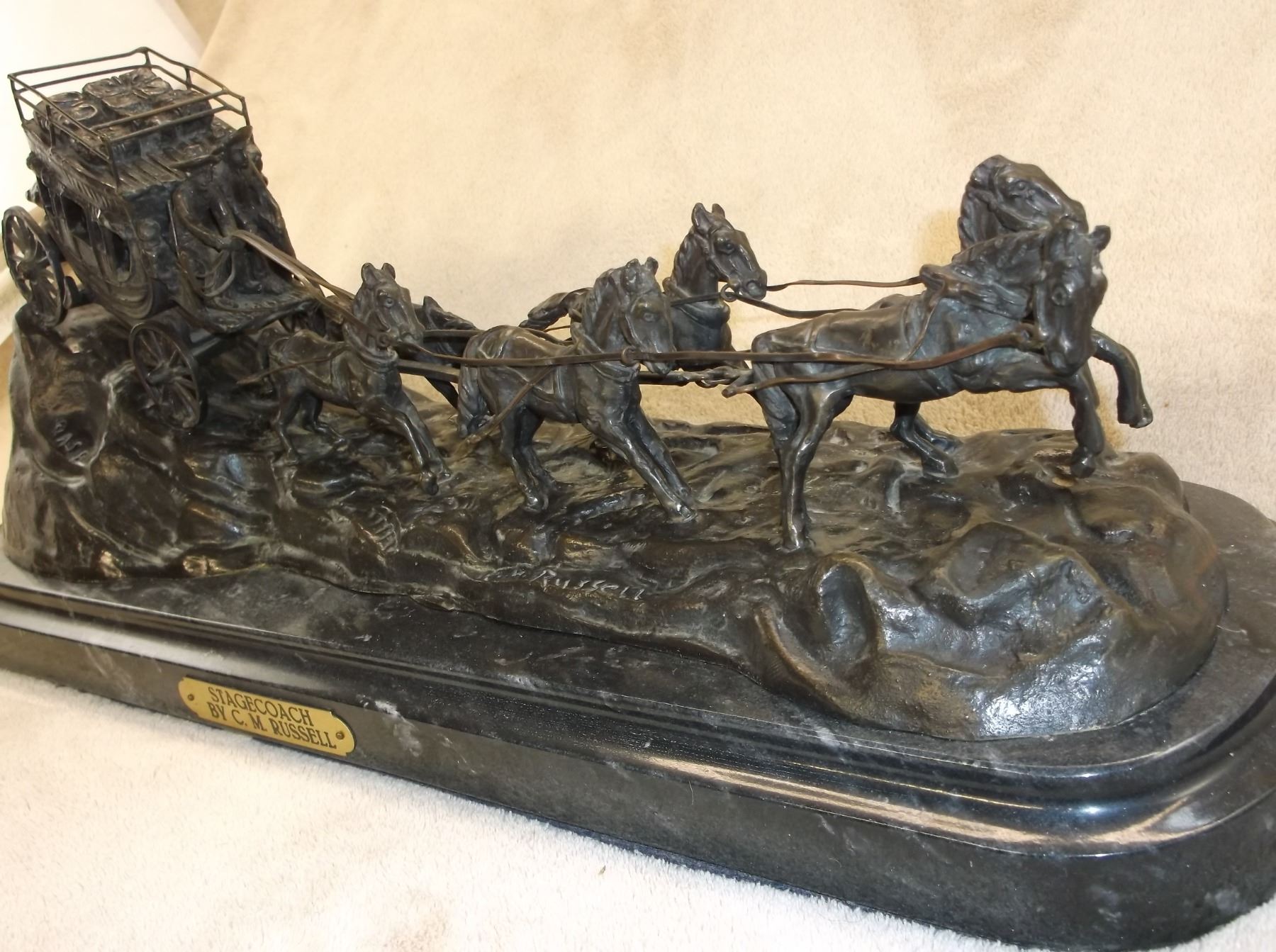 Marked "Stagecoach" By CM Russell Copyright ASB Bronze- 22"L X 9"H X 8.5"D