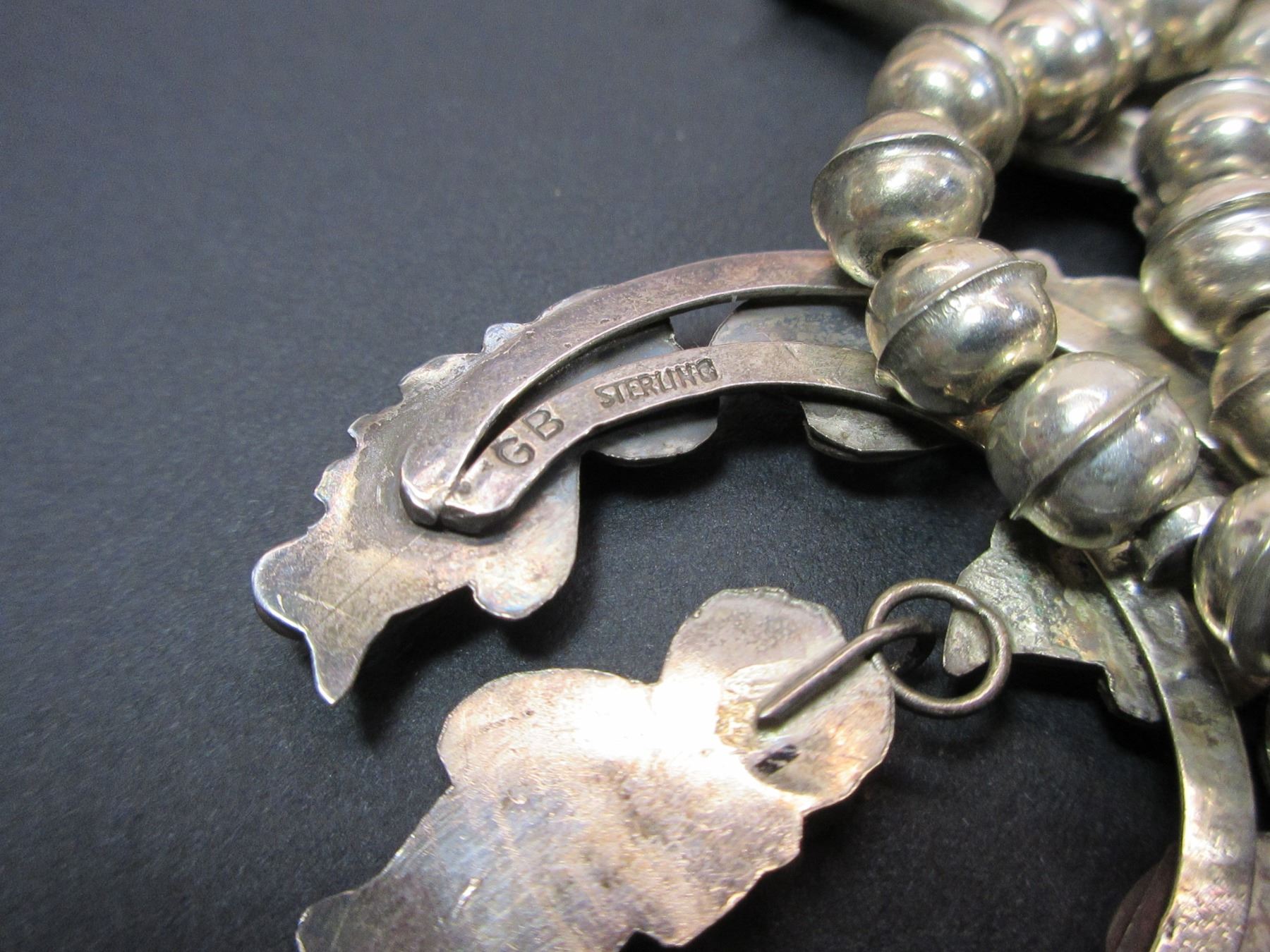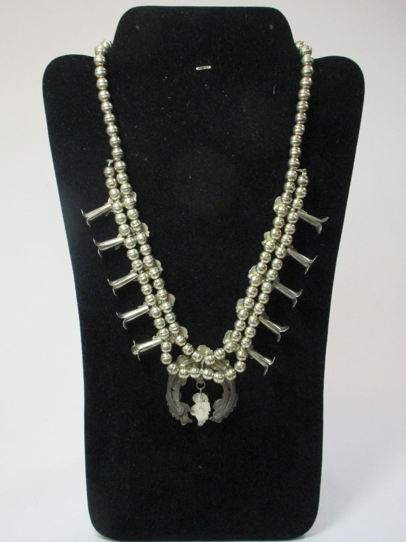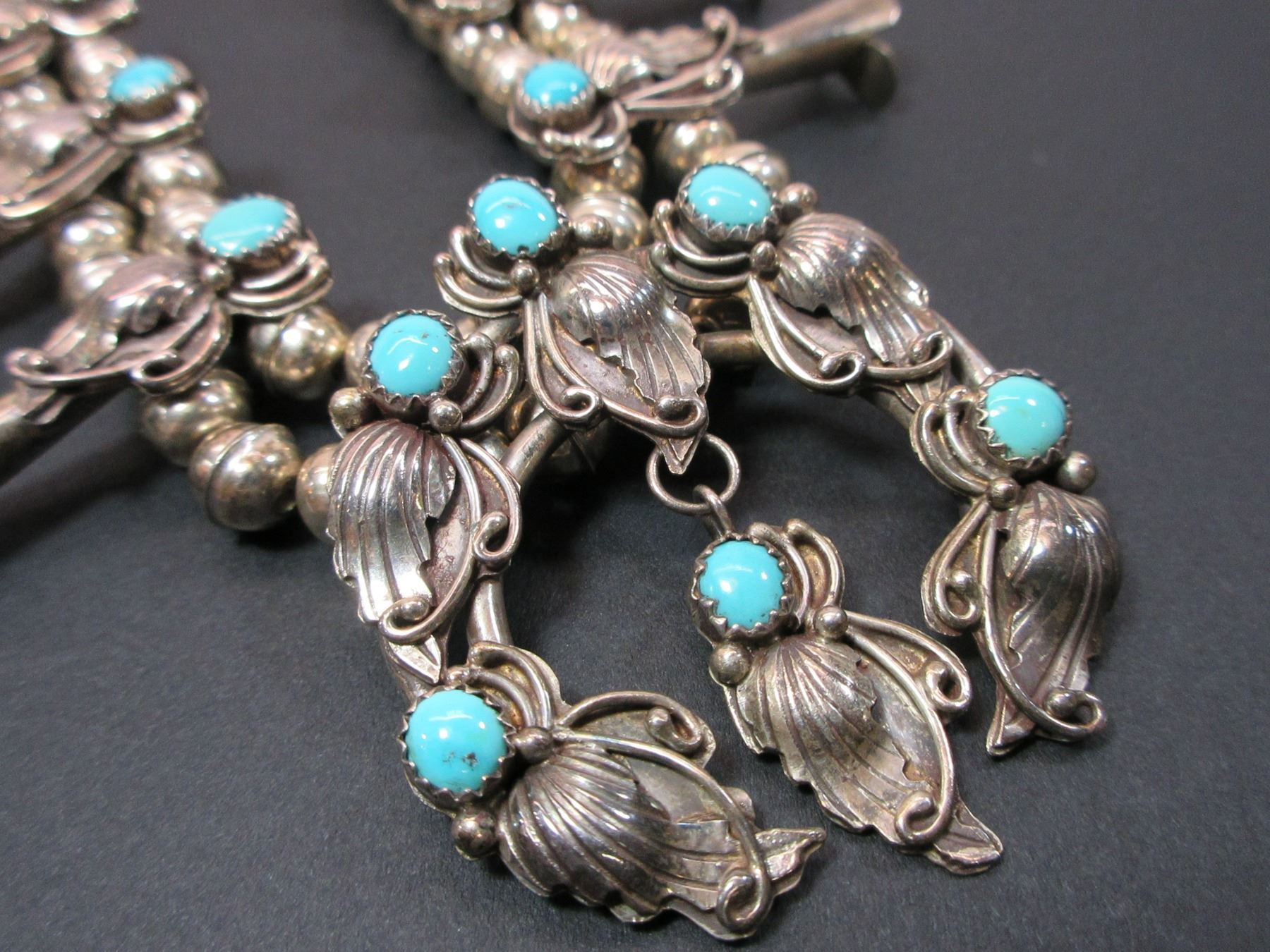 Marked Sterling 89 Squash Blossom Necklace- Turquoise and Sterling- 12"