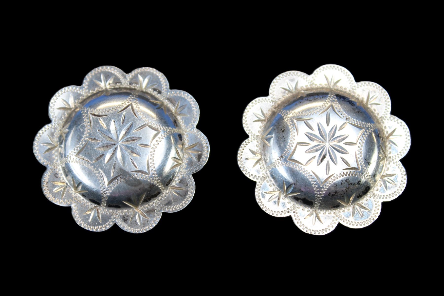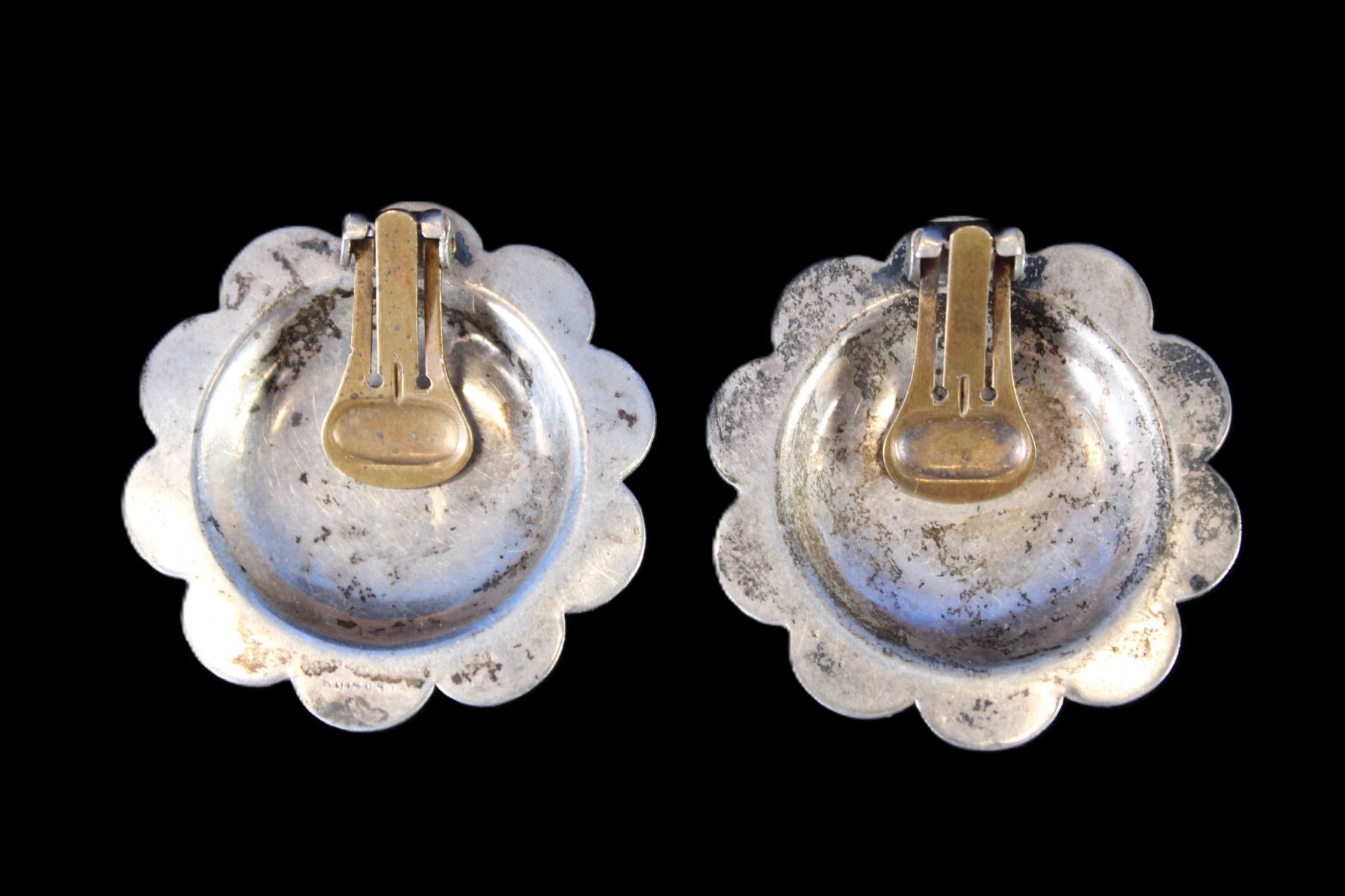 Marked Sterling Clip On Concho Earrings- 1.5"- Ernie Morris Collection