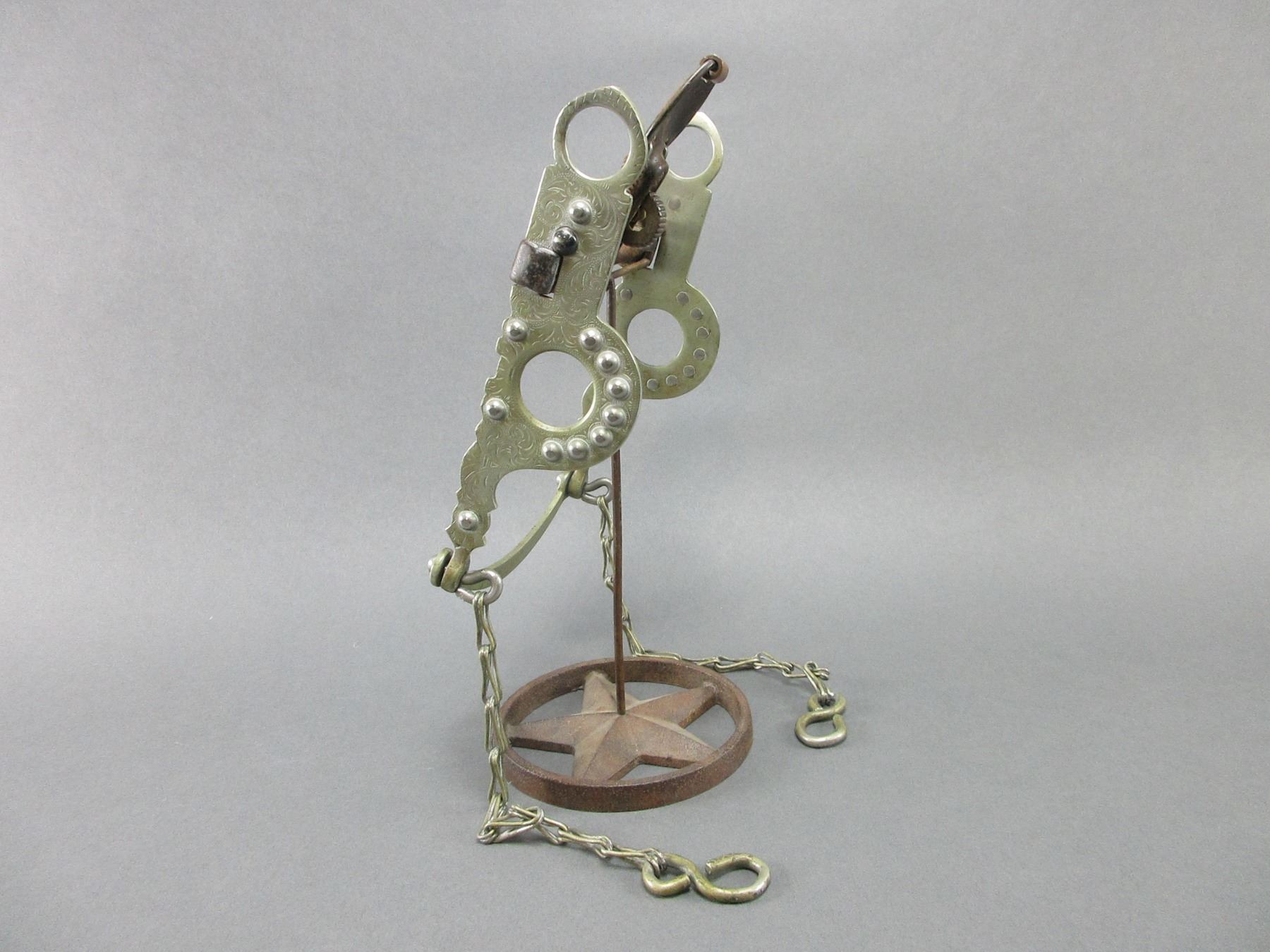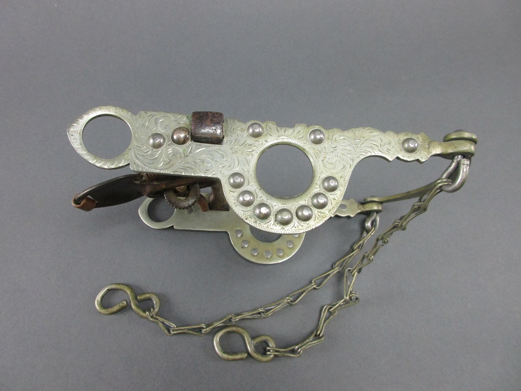 Marked Western Bit+Spur Silver Overlaid Bit- Santa Barbara Cheek- Spoon Mouth- Very Faint Marked- Probably Nickel Silver- Rein Chains- Good Conditions