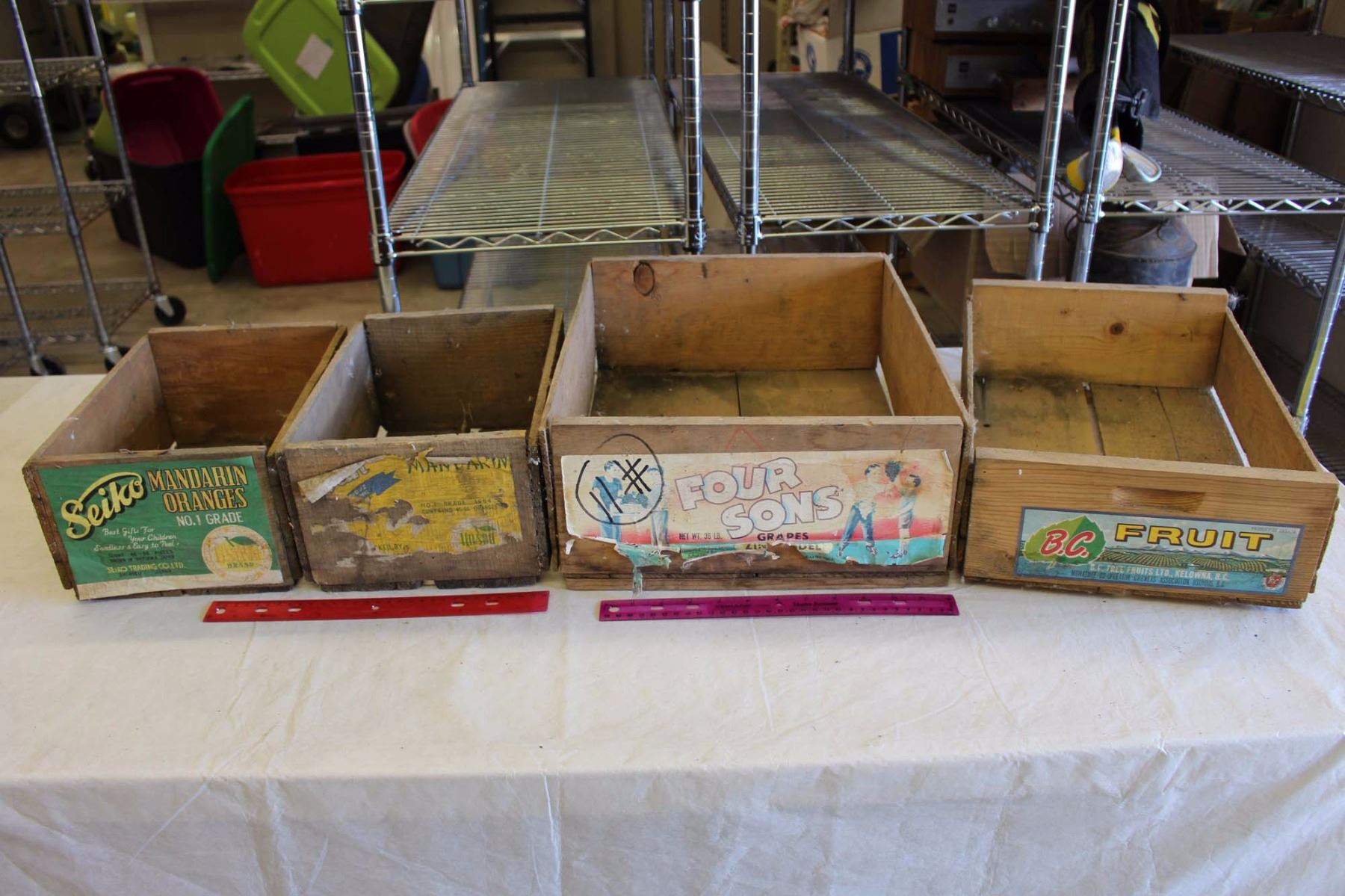 Marked Wooden Crates (4)(B.C Fruit, Four Sons, Seiko, Sun)
