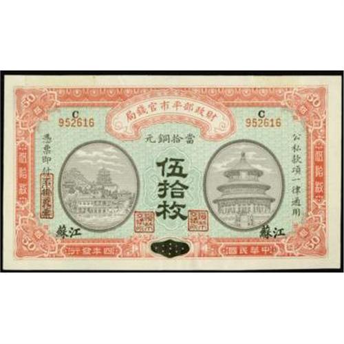 <style type="text/css"> body, td, th { font-family: Arial, Helvetica, sans-serif; font-size: 12px; color: #482424; margin: 0px; padding: 0px; } #header { background-image: url(http://www.bowersandmerena.com/ebay/images/template_v3_01.gif); clear: both; background-color: #590303; border-top-width: 2px; border-top-style: solid; border-top-color: #B38C4F; } #header #header_wrapper { height: 75px; clear: both; width: 800px; margin-right: auto; margin-left: auto; background-image: url(http://www.bowersandmerena.com/ebay/images/template_v3_03.gif); background-repeat: no-repeat; background-position: right; color: #F3EDCC; } #header #header_wrapper #header_logo { float: left; height: 75px; width: 444px; background-image: url(http://www.bowersandmerena.com/ebay/images/template_v3_02.gif); background-repeat: no-repeat; font-size: 10px; text-transform: capitalize; color: #B38C4F; } #header #header_wrapper #header_right { float: left; height: 75px; width: 356px; text-align: right; } #header #header_wrapper #header_right #headerLoginBtn { margin-bottom: 30px; } #header #header_wrapper #header_right input#txtSearch { color: #B49056; border: 1px solid #B49056; width: 175px; padding-top: 3px; padding-right: 3px; padding-bottom: 4px; padding-left: 3px; } #nav { height: 37px; background-image: url(http://www.bowersandmerena.com/ebay/images/template_v3_05.gif); clear: both; } #nav #nav_wrapper { height: 35px; width: 800px; margin-right: auto; margin-left: auto; border-left-width: 1px; border-left-style: solid; border-left-color: #B38C4F; } #nav #nav_wrapper a { padding-right: 15px; padding-left: 15px; border-right-width: 1px; border-right-style: solid; border-right-color: #B38C4F; height: 25px; padding-top: 10px; display: block; float: left; text-decoration: none; font-weight: bold; color: #5D0303; } #nav #nav_wrapper a:hover { color: #B38C4F; } #nav #nav_wrapper #search { float: right; padding-top: 7px; } #nav #nav_wrapper #search #txtSearch { font-family: Arial, Helvetica, sans-serif; font-size: 10px; text-transform: uppercase; color: #D2AE75; border: 1px solid #B38C4F; padding: 3px; } #content_bgd { background-image: url(http://www.bowersandmerena.com/ebay/images/template_v3_09.gif); background-repeat: repeat-y; background-position: center; padding-top: 15px; padding-bottom: 15px; background-color: #FBFBDB; } #content_wrapper { clear: both; height: auto; width: 800px; margin-right: auto; margin-left: auto; } .LotDetailWhite { line-height:normal; font-size:13px; font-family: arial,helvetica,sans-serif; color: White; font-weight: bold; } .LotDetailInformation { line-height:normal; font-size: 13px; font-family: arial,helvetica,sans-serif; } .LotDetailMessage { line-height:normal; font-size: 13px; font-family: arial,helvetica,sans-serif; color: red; } } tr.HeaderAuctionTitle td { color: #000000; font-weight: bold; padding: 2px; background-image: url(http://www.bowersandmerena.com/ebay/images/template_v3_05.gif); background-repeat: repeat-x; border-bottom-width: 1px; border-bottom-style: solid; border-bottom-color: #B38C4F; } table.AuctionSummary a, table.AuctionSummary a:link, table.AuctionSummary a:visited { color: #0000FF; text-decoration: none; } } td.tableHeaderLeft { border-left-width: 1px; border-left-style: solid; border-left-color: #B38C4F; } td.tableHeaderRight { border-right-width: 1px; border-right-style: solid; border-right-color: #B38C4F; } td.tableCellMiddle { border-left-width: 1px; border-left-style: solid; border-left-color: #B38C4F; border-right-width: 1px; border-right-style: solid; border-right-color: #B38C4F; padding: 5px; } tr.footer td { border-top-width: 1px; border-top-style: solid; border-top-color: #B38C4F; } </style> </head> <body> <div id="header"> <div id="header_wrapper"> <div id="header_logo"> </div> <div id="header_right"> </div> </div> </div> <div id="nav"> <div id="nav_wrapper"> <a href="http://www.bowersandmerena.com">Our eBayLive Auctions</a> <a href="#PaymentInfo">Payment Information</a> <a href="#ShippingInfo">Shipping Information</a> <a href="#About">About Bowers and Merena</a> </div> </div> <div id="content_bgd"> <div id="content_wrapper"> <table width="100%" border="0" cellpadding="5" cellspacing="0" class="AuctionSummary"> <tbody> <tr class="HeaderAuctionTitle" style="height: 25px;"> <td align="left" class="tableHeaderLeft" > </td> <td align="center" class="tableHeaderRight"> <span style="font-size: large;">Lot #254. China--Republic. Market Stabilization Currency Bureau, 1915 Issue.</span> </td> </tr> <tr> <td colspan="3" class="tableCellMiddle"> 1915, 50 Coppers, P-602 Unlisted Place Name, Kiangsu/Honan, CU to Choice CU condition, rare unlisted place name variety.