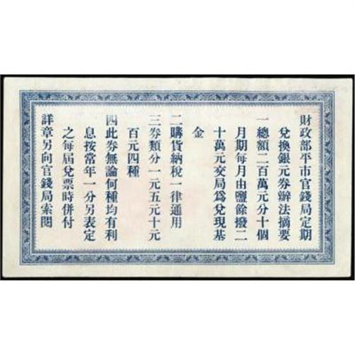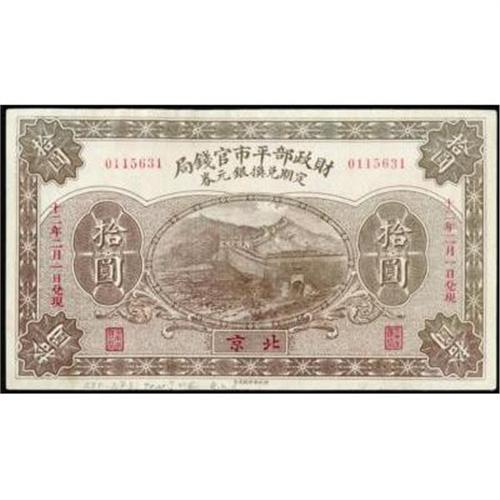 <style type="text/css"> body, td, th { font-family: Arial, Helvetica, sans-serif; font-size: 12px; color: #482424; margin: 0px; padding: 0px; } #header { background-image: url(http://www.bowersandmerena.com/ebay/images/template_v3_01.gif); clear: both; background-color: #590303; border-top-width: 2px; border-top-style: solid; border-top-color: #B38C4F; } #header #header_wrapper { height: 75px; clear: both; width: 800px; margin-right: auto; margin-left: auto; background-image: url(http://www.bowersandmerena.com/ebay/images/template_v3_03.gif); background-repeat: no-repeat; background-position: right; color: #F3EDCC; } #header #header_wrapper #header_logo { float: left; height: 75px; width: 444px; background-image: url(http://www.bowersandmerena.com/ebay/images/template_v3_02.gif); background-repeat: no-repeat; font-size: 10px; text-transform: capitalize; color: #B38C4F; } #header #header_wrapper #header_right { float: left; height: 75px; width: 356px; text-align: right; } #header #header_wrapper #header_right #headerLoginBtn { margin-bottom: 30px; } #header #header_wrapper #header_right input#txtSearch { color: #B49056; border: 1px solid #B49056; width: 175px; padding-top: 3px; padding-right: 3px; padding-bottom: 4px; padding-left: 3px; } #nav { height: 37px; background-image: url(http://www.bowersandmerena.com/ebay/images/template_v3_05.gif); clear: both; } #nav #nav_wrapper { height: 35px; width: 800px; margin-right: auto; margin-left: auto; border-left-width: 1px; border-left-style: solid; border-left-color: #B38C4F; } #nav #nav_wrapper a { padding-right: 15px; padding-left: 15px; border-right-width: 1px; border-right-style: solid; border-right-color: #B38C4F; height: 25px; padding-top: 10px; display: block; float: left; text-decoration: none; font-weight: bold; color: #5D0303; } #nav #nav_wrapper a:hover { color: #B38C4F; } #nav #nav_wrapper #search { float: right; padding-top: 7px; } #nav #nav_wrapper #search #txtSearch { font-family: Arial, Helvetica, sans-serif; font-size: 10px; text-transform: uppercase; color: #D2AE75; border: 1px solid #B38C4F; padding: 3px; } #content_bgd { background-image: url(http://www.bowersandmerena.com/ebay/images/template_v3_09.gif); background-repeat: repeat-y; background-position: center; padding-top: 15px; padding-bottom: 15px; background-color: #FBFBDB; } #content_wrapper { clear: both; height: auto; width: 800px; margin-right: auto; margin-left: auto; } .LotDetailWhite { line-height:normal; font-size:13px; font-family: arial,helvetica,sans-serif; color: White; font-weight: bold; } .LotDetailInformation { line-height:normal; font-size: 13px; font-family: arial,helvetica,sans-serif; } .LotDetailMessage { line-height:normal; font-size: 13px; font-family: arial,helvetica,sans-serif; color: red; } } tr.HeaderAuctionTitle td { color: #000000; font-weight: bold; padding: 2px; background-image: url(http://www.bowersandmerena.com/ebay/images/template_v3_05.gif); background-repeat: repeat-x; border-bottom-width: 1px; border-bottom-style: solid; border-bottom-color: #B38C4F; } table.AuctionSummary a, table.AuctionSummary a:link, table.AuctionSummary a:visited { color: #0000FF; text-decoration: none; } } td.tableHeaderLeft { border-left-width: 1px; border-left-style: solid; border-left-color: #B38C4F; } td.tableHeaderRight { border-right-width: 1px; border-right-style: solid; border-right-color: #B38C4F; } td.tableCellMiddle { border-left-width: 1px; border-left-style: solid; border-left-color: #B38C4F; border-right-width: 1px; border-right-style: solid; border-right-color: #B38C4F; padding: 5px; } tr.footer td { border-top-width: 1px; border-top-style: solid; border-top-color: #B38C4F; } </style> </head> <body> <div id="header"> <div id="header_wrapper"> <div id="header_logo"> </div> <div id="header_right"> </div> </div> </div> <div id="nav"> <div id="nav_wrapper"> <a href="http://www.bowersandmerena.com">Our eBayLive Auctions</a> <a href="#PaymentInfo">Payment Information</a> <a href="#ShippingInfo">Shipping Information</a> <a href="#About">About Bowers and Merena</a> </div> </div> <div id="content_bgd"> <div id="content_wrapper"> <table width="100%" border="0" cellpadding="5" cellspacing="0" class="AuctionSummary"> <tbody> <tr class="HeaderAuctionTitle" style="height: 25px;"> <td align="left" class="tableHeaderLeft" > </td> <td align="center" class="tableHeaderRight"> <span style="font-size: large;">Lot #901. Private, Local and Misc. Banks and Issuers. Market Stabilization Currency (Gen.).</span> </td> </tr> <tr> <td colspan="3" class="tableCellMiddle"> Peking (Peiping), Silver Promissory note 1923, $10, S/M T183-72 (listed as Rare in S/M), AU condition.