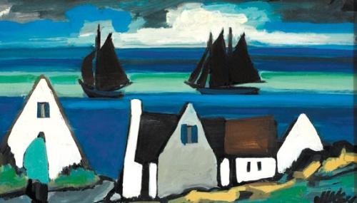 OLD GROOMSPORT signed lower right oil on board <BR>25 by 44cm., 10 by 17.5in. <BR><b>Provenance:</b><BR> Oriel Gallery, Dublin; Private collection, Cork Exhibited: Exhibition arranged by the Oriel Gallery for the former AIB Bank in Sligo, circa 1970s