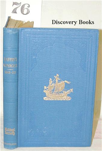 Markham, Clements THE VOYAGES OF WILLIAM BAFFIN, 1612-1622. Edited, with Notes and an Introduction by ....... London: Hakluyt Society 1881 (8) lix,192pp. Frontis port, 8 maps (incl. 2 folding and one large coloured). Original blue cloth, a fine, clean copy, with the bookplate of Wm. Herbert Hobbs, 1928