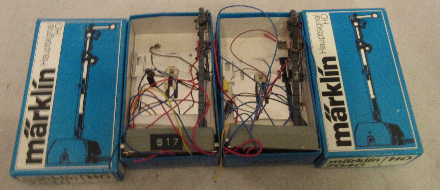 Two (2) Marklin 7040 HO scale home signals in the original boxes. Excellent condition.