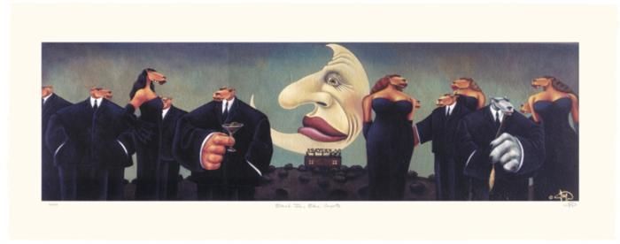 Artist: Markus Pierson Title: Black Tie Blue Coyote Medium: Serigraph on Paper and Canvas Image Size: 45" x 13.5 Edition: 325 signed and numbered serigraphs on caventry rag paper Certificate of Authenticity included BiographyMarkus Pierson was born in 1961 and raised in the small farming town of Grand Ledge, Michigan, where his father owned a popular restaurant. A self-proclaimed reckless "racer", Markus was the youngest and most challenging of the four Pierson children. While a student, an encouraging art teacher swung wide the door to Markus' talent and profoundly moved him. However, the Grand Ledge art scene was somewhat lacking, leading Markus to take on a number of odd jobs before accidentally stumbling upon accounting as a means to making a living. After a near-fatal bout with Crohn's Disease in early 1985, he declared that the accountant was "dead" and in his place was a man pursuing his dream of becoming a successful artist. The Coyote Series was born in June of 1986, after Markus heard the Joni Mitchell song, "Coyote." He loved it, played it often and memorized the words. The focus of the song, a guy referred to as "Coyote," is a reckless, footloose Casanova type fellow - Pierson aspired to be the carefree romancer described in those lyrics. Then he did something he'd never done before or since: Markus made a drawing of a song. Over the next six months Markus painted billboards by day for a living and drew his Coyotes into the night. To the wall above his desk he taped these words, "No one works this hard and this smart - and has it come to nothing." Within a year, he walked out of Artexpo in New York City with commitments from 110 art galleries who sought to represent his work. In the decades that followed, Pierson's work has evolved to include a vast array of paintings, drawings, sculpture, hand-pulled serigraphs and original found-object works. Over time, the metaphor of the Coyote has taken on a more poignant and profound purpose. At its essence, the work urges us to pursue our dreams, wear our hearts on our sleeves, and to celebrate all of life's ups and downs. He has had nearly one hundred solo exhibitions in galleries across America, Australia and New Zealand, while also being featured at various prestigious international fairs including Art Miami, Artexpo New York, Sofa Chicago, Chicago Contemporary & Classic, and palmbeach3. Markus has amassed a collector base which includes Heads of State, major corporations and celebrities worldwide. Markus' wife and muse is artist, Sheryl Pierson. The two live and work in a converted loft in Kansas City, Missouri. "There's no doubt in my mind that my success has more to do with luck than talent, more to do with stubbornness than vision, more to do with ignorance than insight, but the fact remains that I pursued my dream and attained it against staggering odds. I say this now to anyone who will listen: even if I had failed, it would have been worth it. Better to face a brutal truth than to grow old wondering what might have been. " Markus Pierson