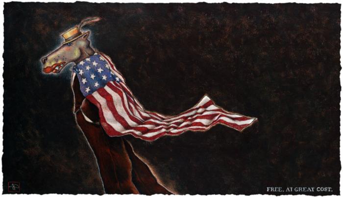 Artist: Markus Pierson Title: Free at Great Cost Medium: Digital Pigment Print with Serigraph on Paper Image and Paper size: 15" x 26" Edition: 95 Arabic numbers Certificate of Authenticity included BiographyMarkus Pierson was born in 1961 and raised in the small farming town of Grand Ledge, Michigan, where his father owned a popular restaurant. A self-proclaimed reckless "racer", Markus was the youngest and most challenging of the four Pierson children. While a student, an encouraging art teacher swung wide the door to Markus' talent and profoundly moved him. However, the Grand Ledge art scene was somewhat lacking, leading Markus to take on a number of odd jobs before accidentally stumbling upon accounting as a means to making a living. After a near-fatal bout with Crohn's Disease in early 1985, he declared that the accountant was "dead" and in his place was a man pursuing his dream of becoming a successful artist. The Coyote Series was born in June of 1986, after Markus heard the Joni Mitchell song, "Coyote." He loved it, played it often and memorized the words. The focus of the song, a guy referred to as "Coyote," is a reckless, footloose Casanova type fellow - Pierson aspired to be the carefree romancer described in those lyrics. Then he did something he'd never done before or since: Markus made a drawing of a song. Over the next six months Markus painted billboards by day for a living and drew his Coyotes into the night. To the wall above his desk he taped these words, "No one works this hard and this smart - and has it come to nothing." Within a year, he walked out of Artexpo in New York City with commitments from 110 art galleries who sought to represent his work. In the decades that followed, Pierson's work has evolved to include a vast array of paintings, drawings, sculpture, hand-pulled serigraphs and original found-object works. Over time, the metaphor of the Coyote has taken on a more poignant and profound purpose. At its essence, the work urges us to pursue our dreams, wear our hearts on our sleeves, and to celebrate all of life's ups and downs. He has had nearly one hundred solo exhibitions in galleries across America, Australia and New Zealand, while also being featured at various prestigious international fairs including Art Miami, Artexpo New York, Sofa Chicago, Chicago Contemporary & Classic, and palmbeach3. Markus has amassed a collector base which includes Heads of State, major corporations and celebrities worldwide. Markus' wife and muse is artist, Sheryl Pierson. The two live and work in a converted loft in Kansas City, Missouri. "There's no doubt in my mind that my success has more to do with luck than talent, more to do with stubbornness than vision, more to do with ignorance than insight, but the fact remains that I pursued my dream and attained it against staggering odds. I say this now to anyone who will listen: even if I had failed, it would have been worth it. Better to face a brutal truth than to grow old wondering what might have been. " Markus Pierson