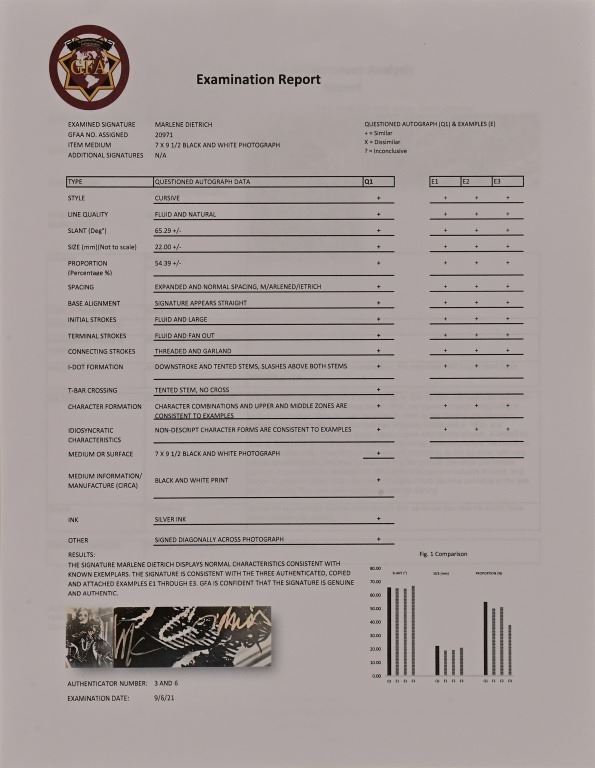 Marlene Dietrich autographed photo. Measures 8x10 inches. GFA Authenticated
