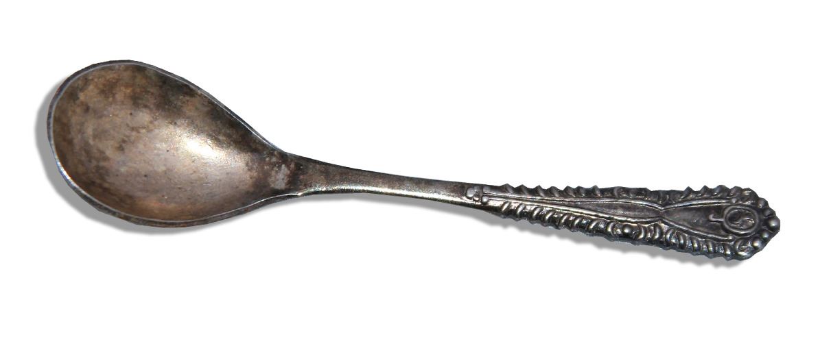 Marlene Dietrich personally owned silver-plated salt spoon. Tiny spoon for use with an individual salt cellar features a plain bowl and ornate handle. Measures approximately 2''. Tarnishing, else near fine. From the estate of Marlene Dietrich.