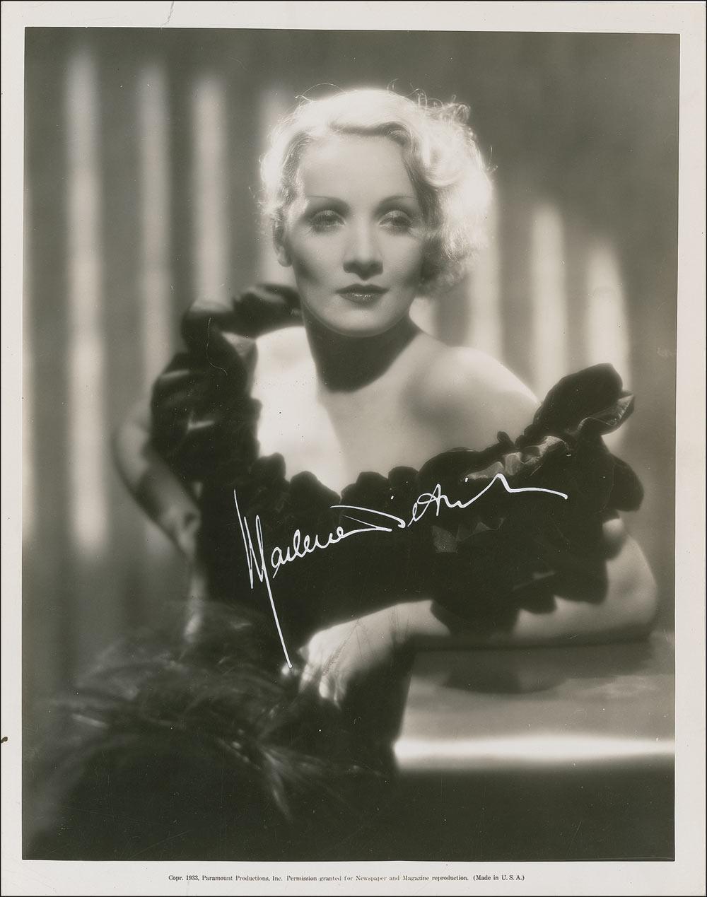 Vintage glossy 8 x 10 Paramount publicity photo from 1933, taken by Robert Richee, signed in white ink. In fine condition, with small tear to top edge, a few small creases, and a bit of trivial spotting to finish. A beautifully signed vintage example of the glamorous Hollywood icon.