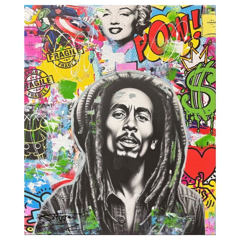 "Marley Forever" is a unique mixed media acrylic on gallery wrapped canvas by Jozza. This piece is hand signed and titled in verso. Includes Letter of Authenticity. Measures approximately 30" x 24" (image).