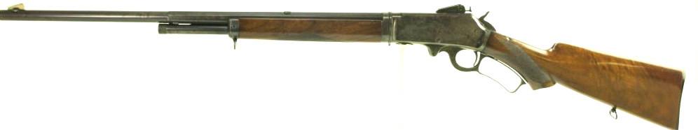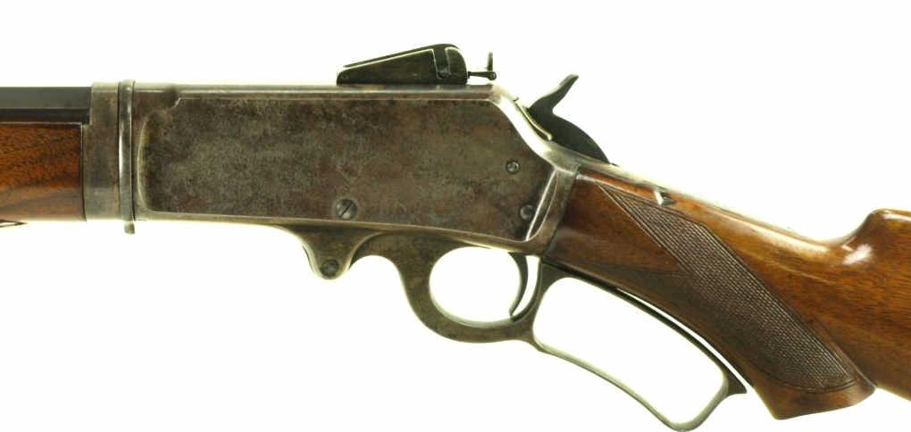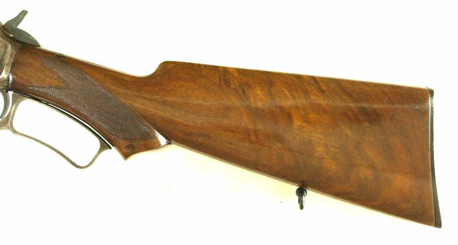 scattered light pin prick pitting, mag tube shows 70-80% also showing areas of scattered pin prick pitting, barrel markings including SPECIAL SMOKELESS STEEL and barrel address remain very sharp, receiver shows combination of vibrant and muted case coloring. Rifle fitted with Rocky Mountain blade front and Marlin combination rear sight. Walnut shock shows good checkering, tight wood to metal fit, original Marlin butt plate intact, neither show cracks or repairs. Nice model 1893 with good features excellent action and good bore. FFL required.