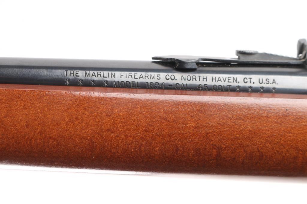 Lever-Action. Carbine configuration.18" round barrel with full length tube magazine, hooded post/bead front and semi-buckhorn rear sporting sights. "JM" stamped on lower barrel. Straight walnut stock/forearm. Black plastic factory buttplate. Receiver drilled/tapped for scope mount. Smooth trigger. Action is crisp/tight. Bore is excellent/bright. Blued metal finish and wood are excellent. Like new condition. NRA Condition- Excellent. Modern Firearm.