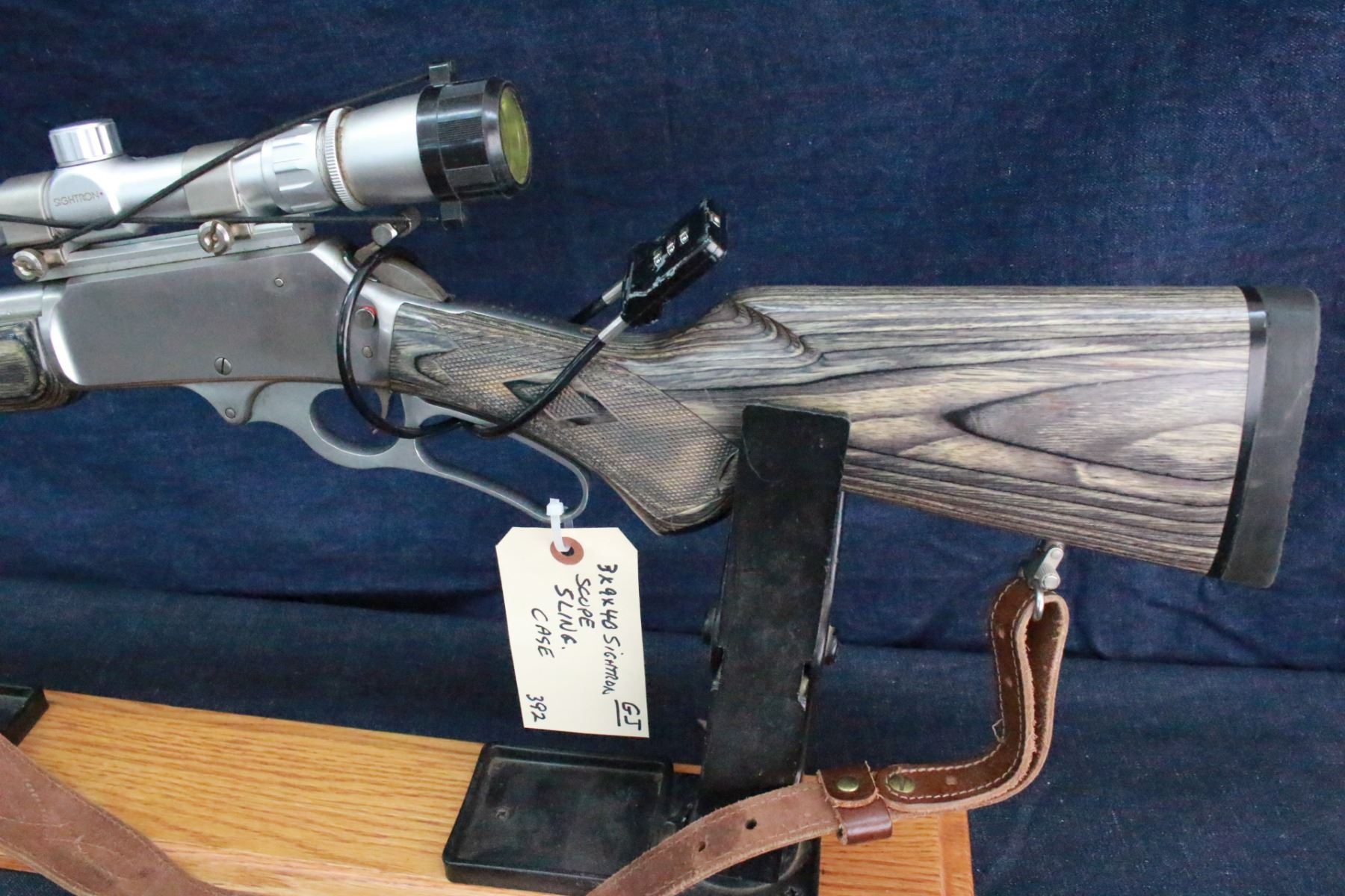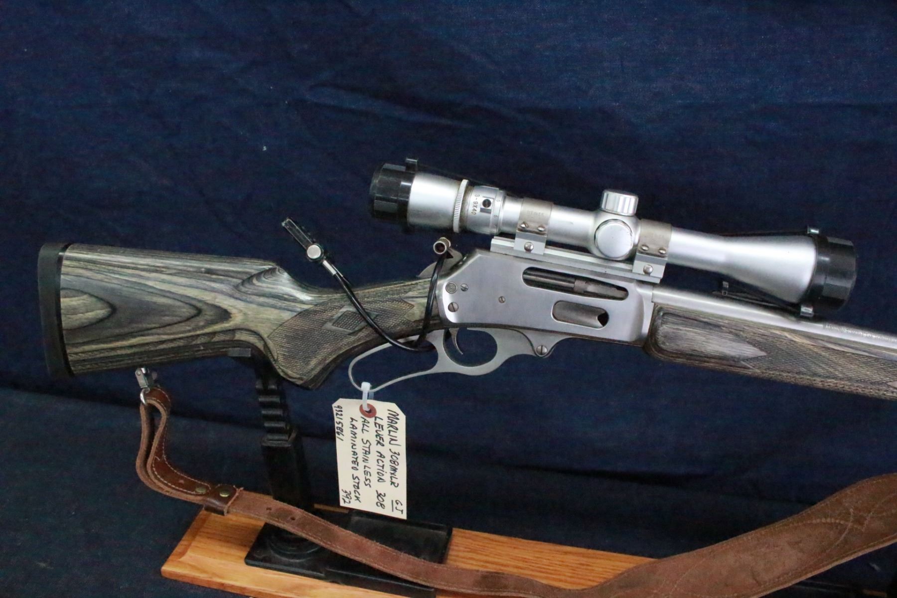 308 Marlin Express; Lever Action; All Stainless; Laminated Stock; with 3-9x40 Scope; Sling; S/N 9321 5861