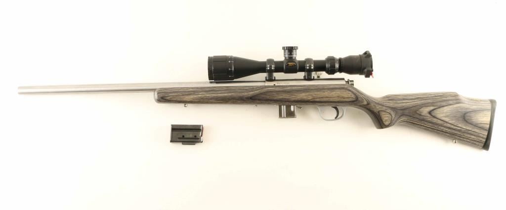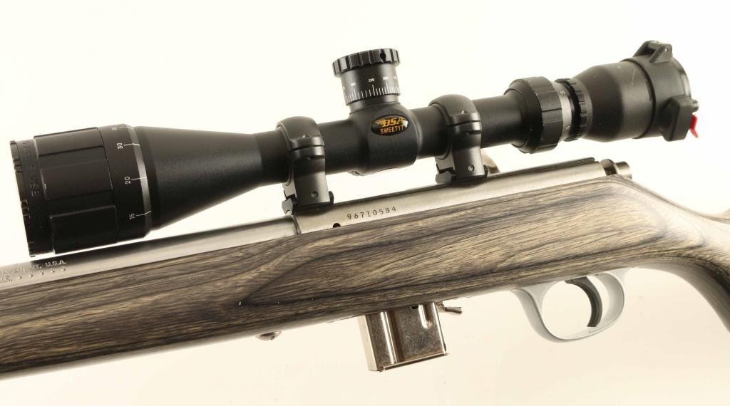 Bolt action detachable magazine sporting rifle. Stainless steel construction, smooth laminated wood semi-pistol grip stock, 22" bull barrel, no rifle sights,includes mounted BSA Sweet 17, 3-12x40 scope with adjustable parallax, good bore and action.. Condition: Very little sign of use. 2 magazines. Condition is NRA Excellent ***Modern Firearm***