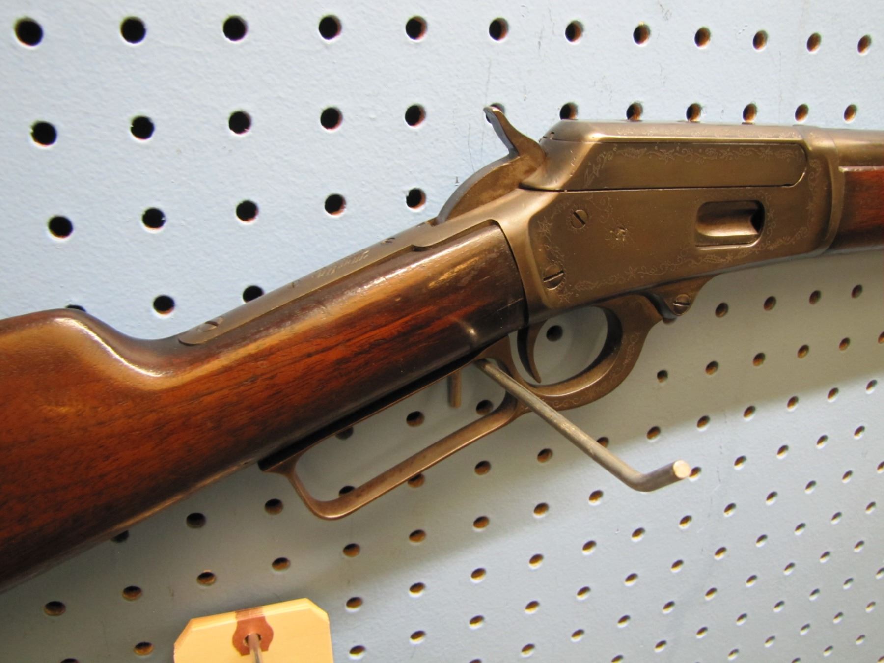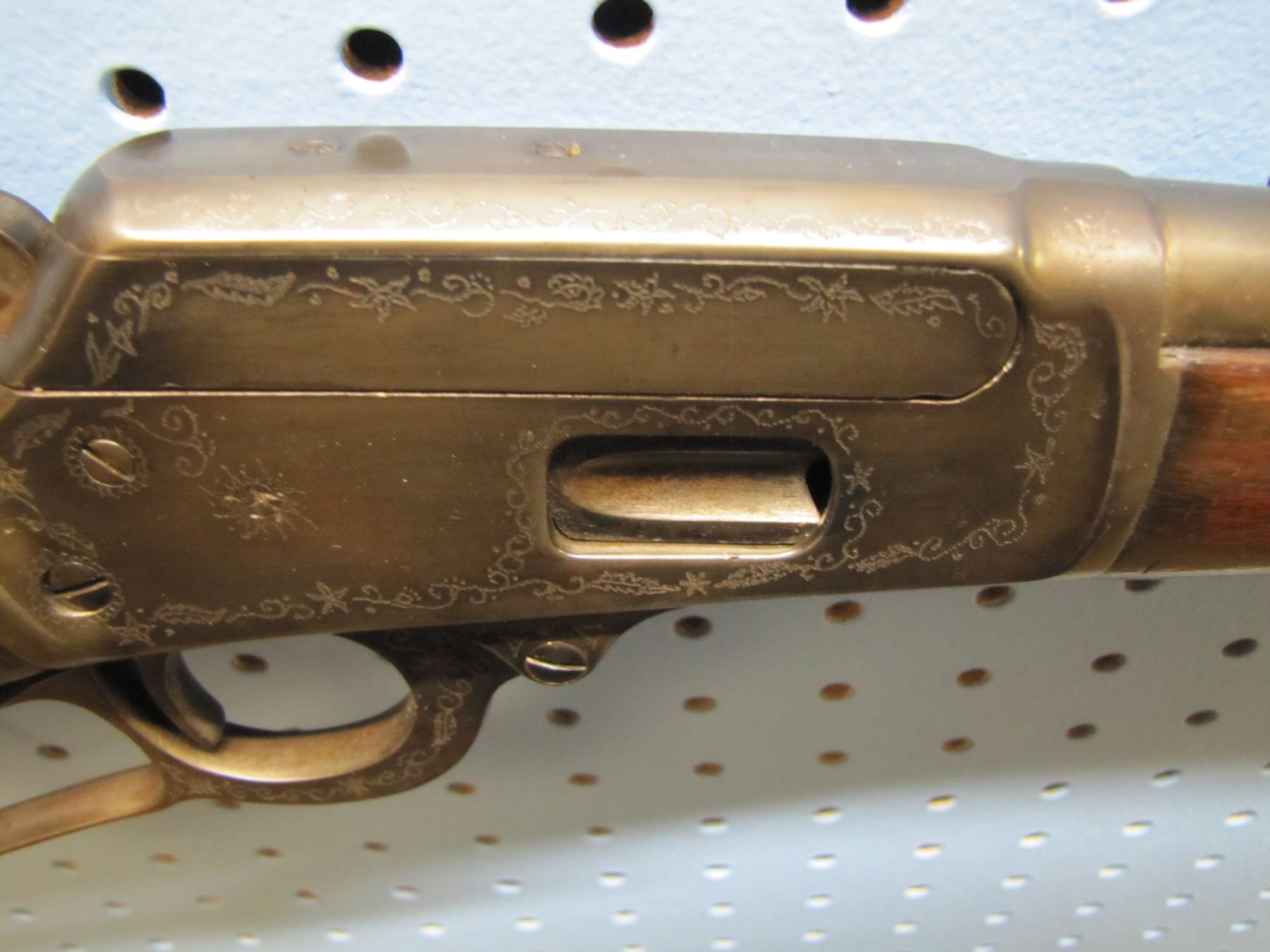 Marlin 94; lever action; 25.20 cal, 24" barrel, receiver, buttplate, fore end cap & levers engraved. S/N 337989