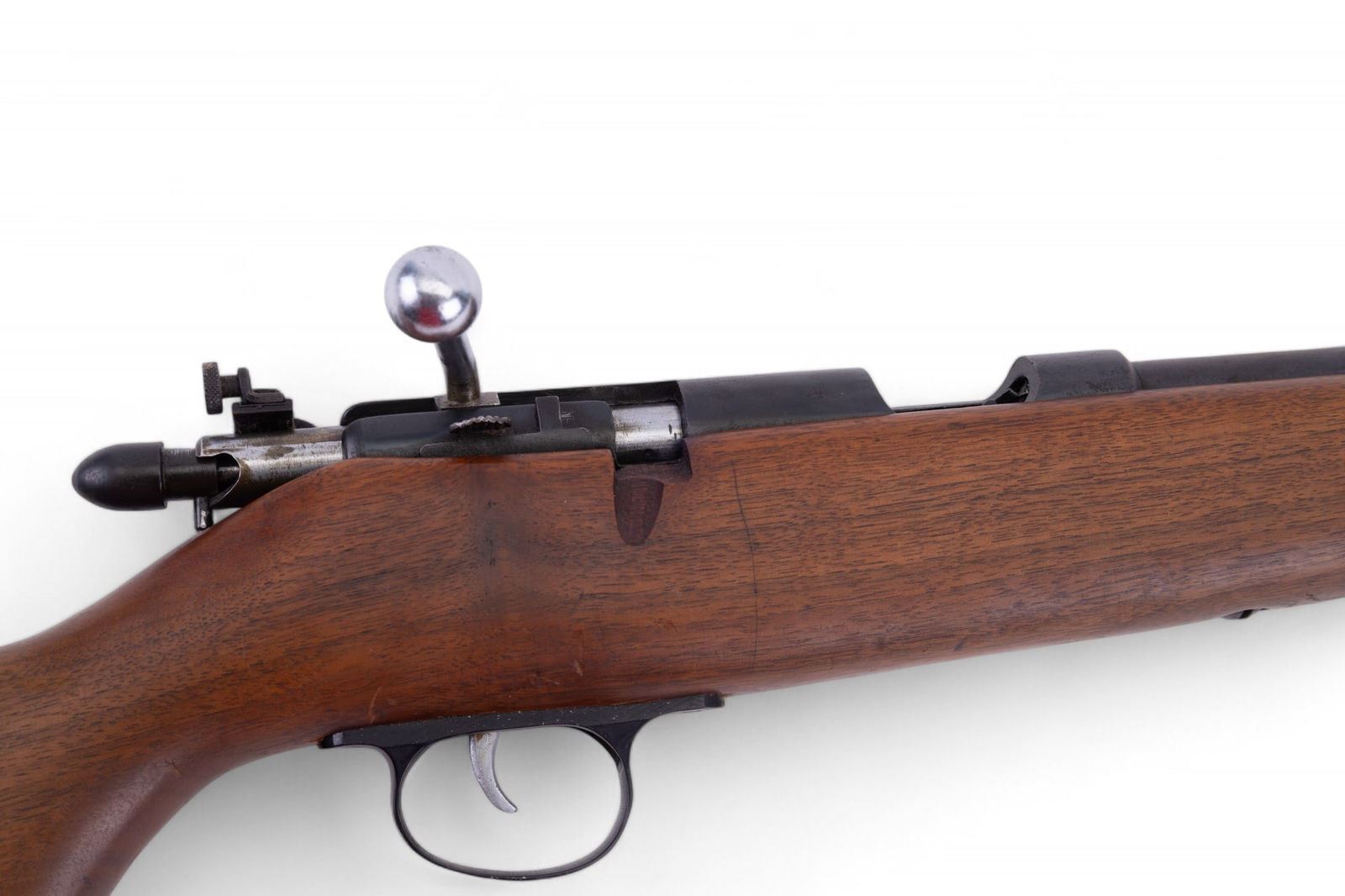Slight surface oxidation on barrel. Strong action. Tube fed magazine. Blot action.