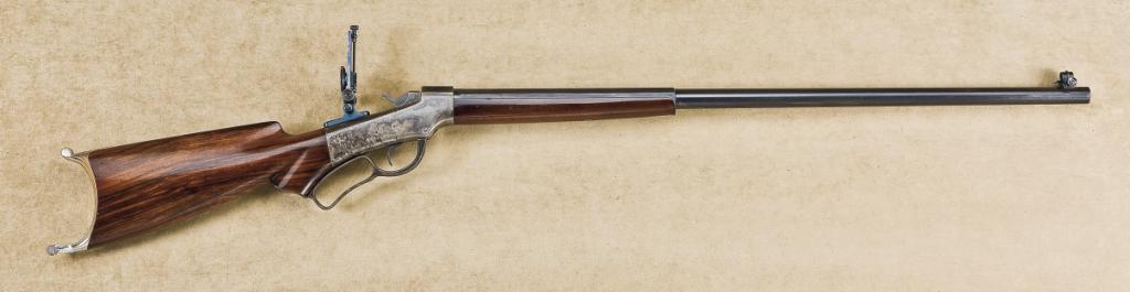 Marlin Ballard number 4, target rifle, .32-40 caliber, 30” half round half octagon standard weight barrel, blue and case hardened finish, select grain, deluxe walnut stocks, Swiss butt, single trigger, aftermarket mid range adjustable vernier type tang sight, for windage and elevation. Marked “F.J. Zika” with adjustable target type front sight matched well to the tang sight. No dovetail in barrel for the sight. The barrel shows 80-90% original blue that is thinning and toning with some light scratching, just beginning normal age. The frame shows 40-60% case hardening drifting and modeling with some areas of rainbow colors showing strong, particularly on the top of the action and inside the weber. The stocks are of select or deluxe quality with a high varnish finish of which 90-95% remains with some bumps, dings, and indentations. The buttplate shows 80-90% nickel. The markings are sharp, the action is tight, the bore is near excellent and the rifle has been well cared for. Est.: $2,500-$5,000