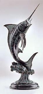 Marlin Bronze Sculpture - 22"H 10.5"W 8 "D - Great Attention To Detail - Beautiful Finish - Lost Wax Cast