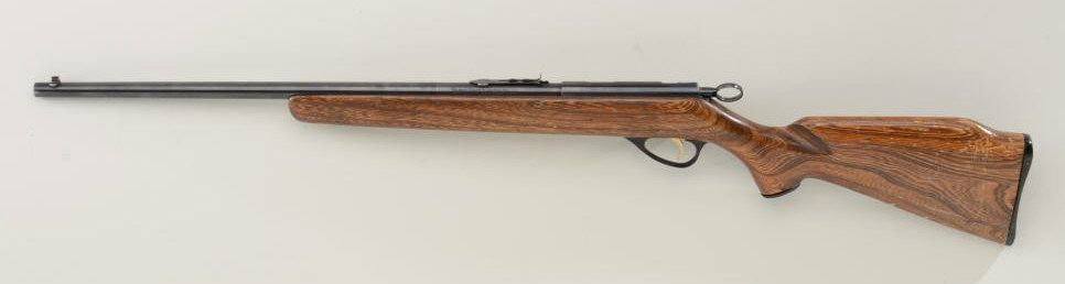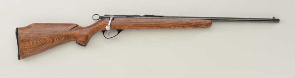 Marlin Crown Prince single shot bolt-action rifle, .22 short, long and LR cal., 22” round barrel, black finish, wood stock, #NVSN. This gun is in overall very good condition showing the majority of its original finish,very good bore, action, markings and good stock with some scattered mars and scratches from storage. Est.: $75-$150.