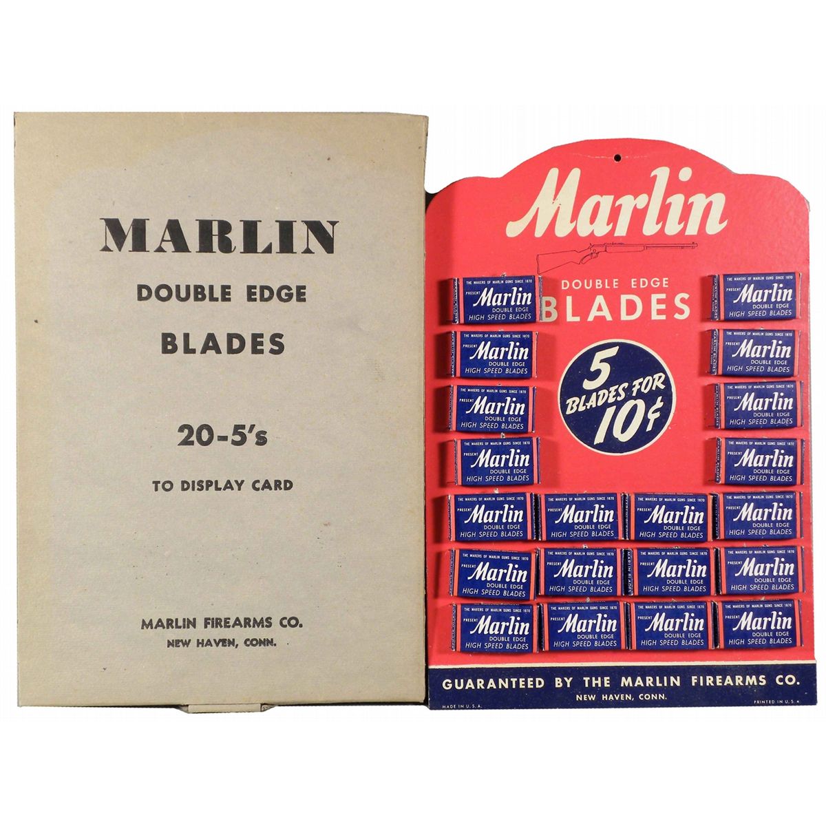 Marlin Double Edge Blade Store Display. The Makers of Marlin Guns Since 1870. Display new in original box. 9 1/4 X 13 1/2 inches.