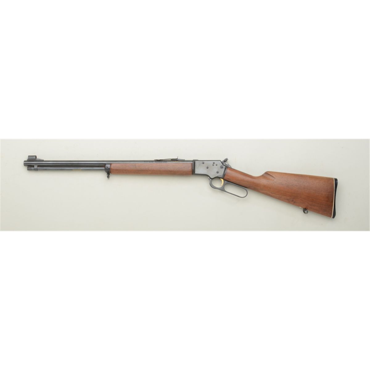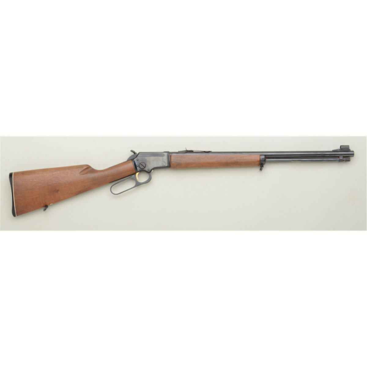 Marlin Golden 39A Mountie Model lever action rifle, .22 short, long or long rifle cal., 20” barrel, black finish, wood stocks, #AA32193. This gun is in overall excellent condition showing approx. 99% originalfinish, fine bore, crisp action, sharp markings, excellent wood, sling swivels. Est.: $175-$350.