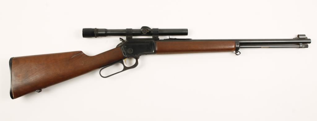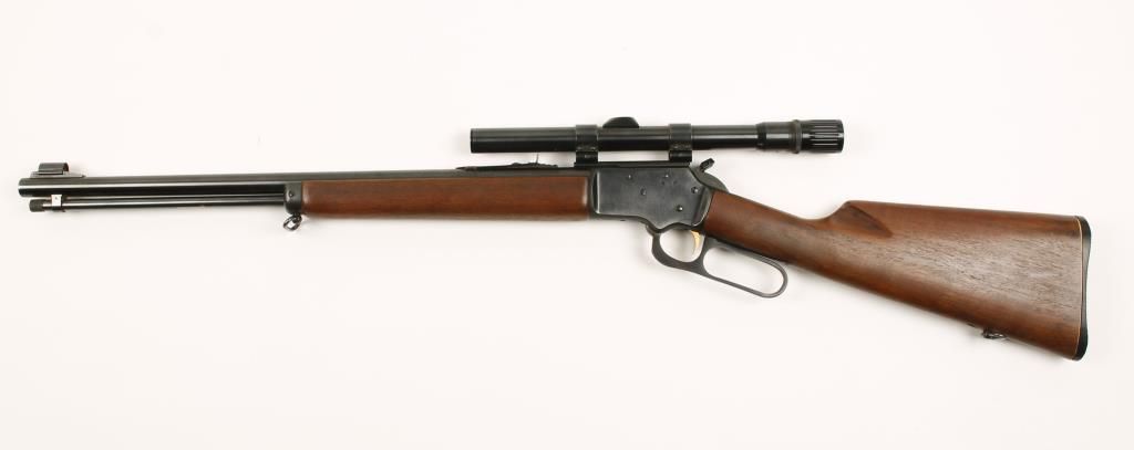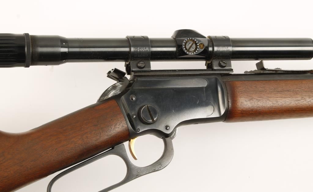 Lever action rifle with scope. 20" barrel. 3-6 power scope in Weaver rings on a Weaver style base. Rare straight wrist buttstock. Made in 1964. Wood is in good plus condition with only one ding and the metal finish is also good with one wear spot under the lever. Bore is dirty with good rifling. Condition is good to very good *Curio & Relic*