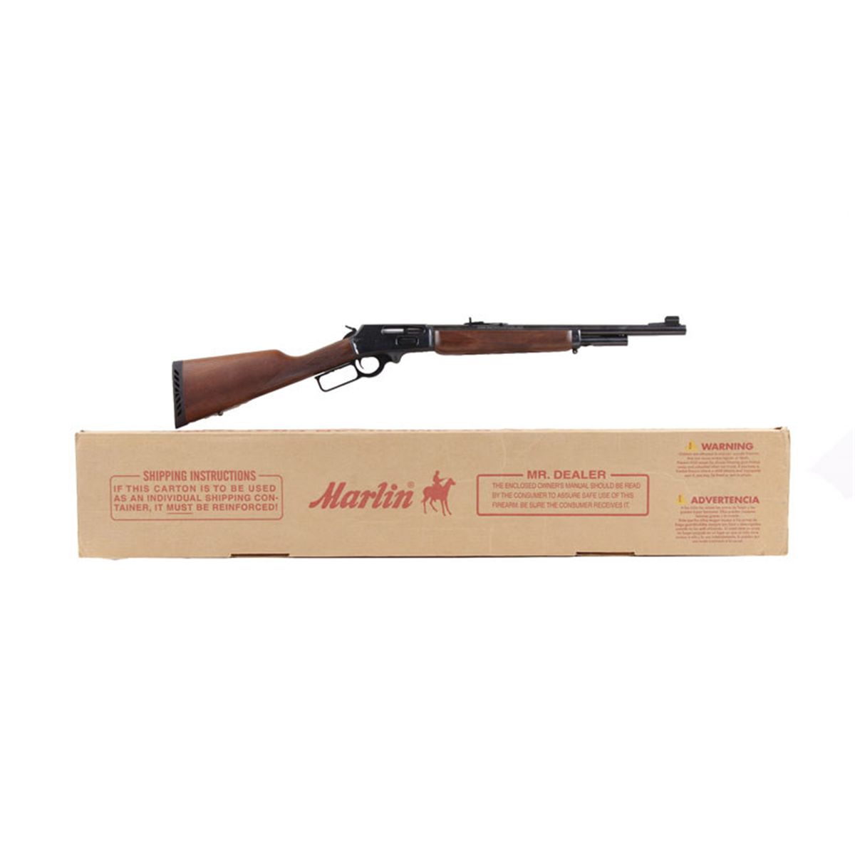 Marlin Mdl 1895G Cal .45-70 Gov't SN:00007488, Lever action "Guide Gun" similar to 336, introduced in 1998. Blued finish, checkered black walnut straight grip stock and forearm with ventilated rubber butt pad, 18 1/2" round ported barrel with 3/4 lengSN:00007488, Lever action "Guide Gun" similar to 336, introduced in 1998. Blued finish, checkered black walnut straight grip stock and forearm with ventilated rubber butt pad, 18 1/2" round ported barrel with 3/4 lengthmagazine and adjustable "semi buckhorn" style rifle sights, cross bolt safety, good bore and action. Includes original box with manual. Condition: Near new with little sign of use.