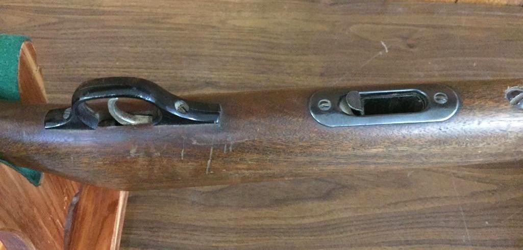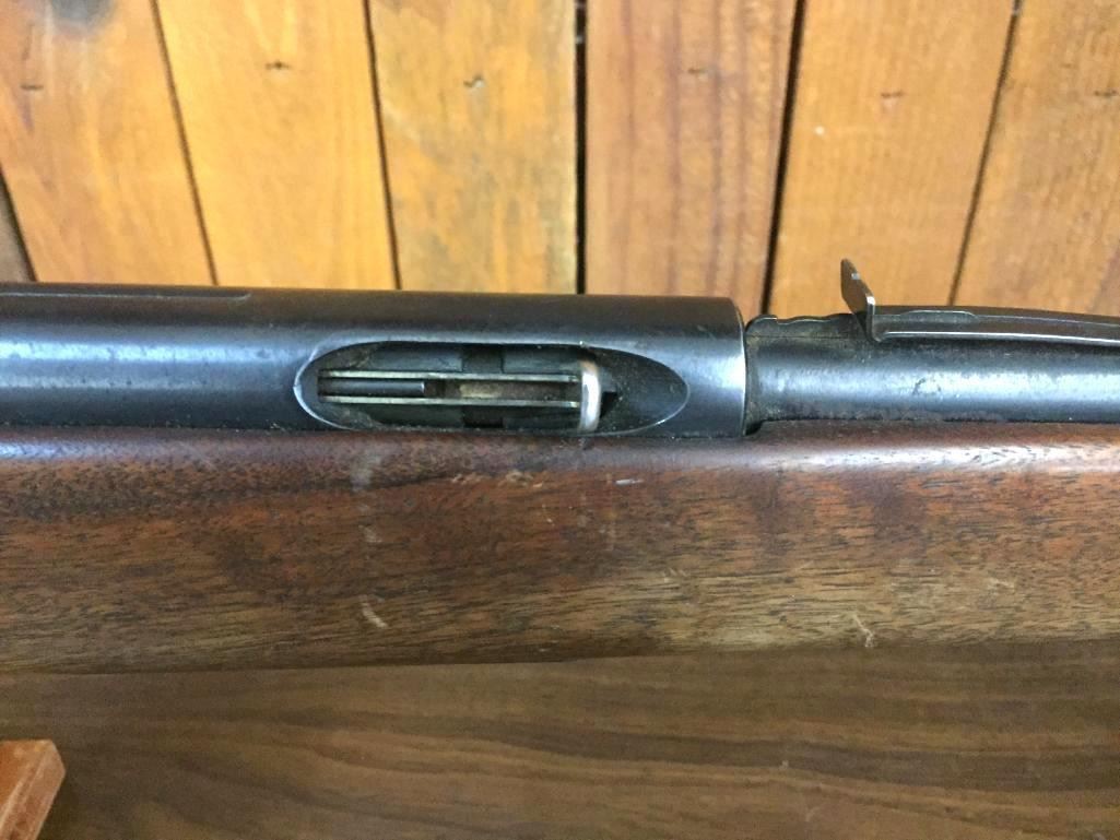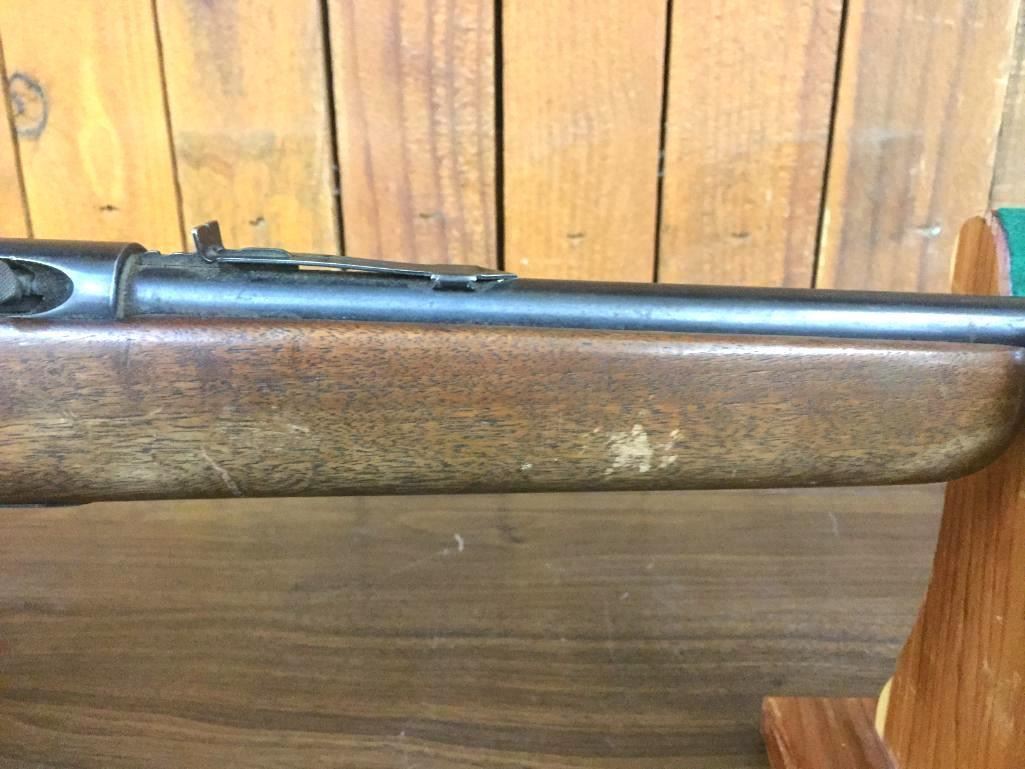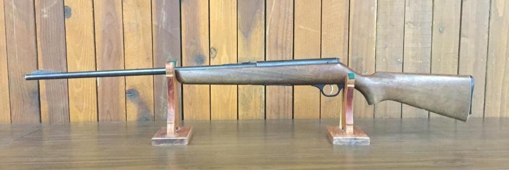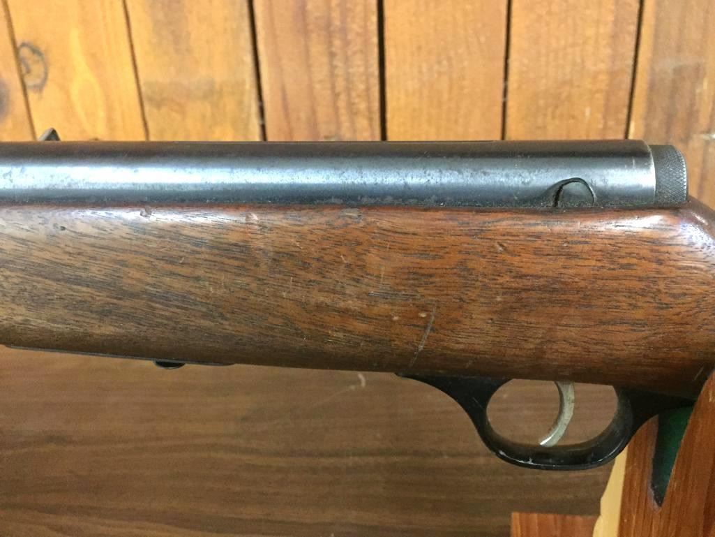Offered for sale in this lot is a Marlin, Model 89C, semi-auto rifle in a .22 caliber with a walnut stock. It has decent finish but is missing the magazine and has a chipped butt plate. Maker: Marlin Firearms Co. Approx. Age: Late 1950s. Size: Barrel measures 23†with an overall length of 44â€. Condition: Fair for its age, wear expected. Please look closely at the pictures - they are an important part of our description. Shipping: There will be a $15 handling, packaging fee for shipping this lot. The actual cost of postage will be added on top of that. *****This firearm requires an FFL Transfer*****