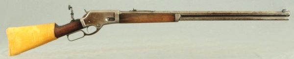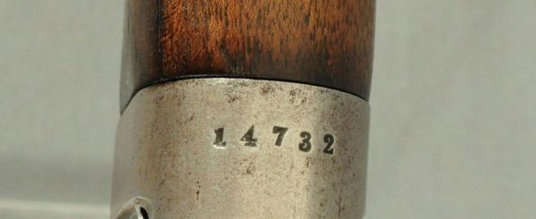28" barrel, leather rear stock cover, flip up peep hole sights, ser# 14732